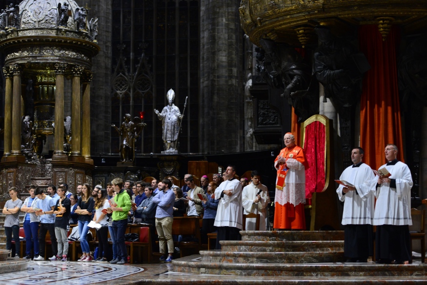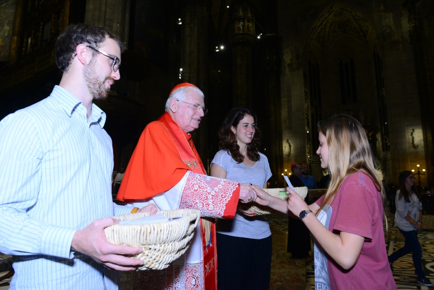 Proprio questo è il richiamo più sentito dai ragazzi, nei commenti a caldo al termine della Veglia: «L’Europa ha bisogno di noi, le cose si possono cambiare», inizia Luigi di Civate. Poi Giulia e Marta di Grezzago, che ricordano di «non giocare con gli affetti», e ancora Annalisa di Milano, colpita dall’invito a «cambiare le relazioni, mettendo in gioco la propria libertà», e che si interroga sull’invito a «guardare a Dio come si guarda al proprio innamorato», lanciato dal Cardinale. Passi esigenti, che però Scola sa riportare a quel racconto della quotidianità con cui si è aperta la Veglia: «Portate la benedizione negli ambienti che frequentate; parlate di Gesù anche negli happy hour; anche lì si può parlare del suo amore, o quantomeno della ricerca del bene». Come un tuffo nella quotidianità è anche la presenza in duomo di Yaas e Daniel, due giovani richiedenti asilo del Gambia, insieme ai ragazzi dell’oratorio di Lesmo.
