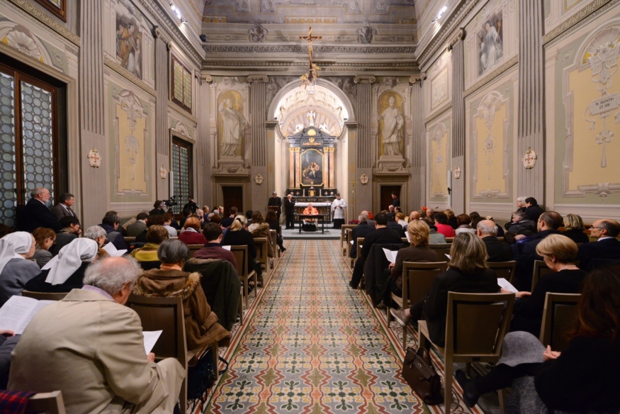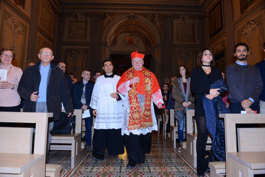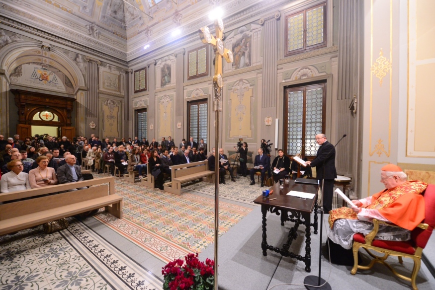 Sessione formale, la 62esima e ultima, intensa, fatta di atti sanciti dal Diritto Canonico, come spiega monsignor Ennio Apeciti, giudice delegato arcivescovile, cui sono accanto Francesca Consolini postulatrice, il promotore di giustizia, don Norberto Valli e don Simone Lucca, notaio attuario pubblico. Vicino a loro anche monsignor Gianfranco Poma che fu il parroco e confessore del giovane Servo di Dio Calo e il vescovo Luigi Stucchi.