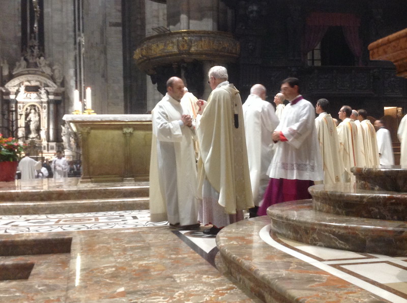 Concelebrano due vescovi – monsignor Paolo Martinelli, vicario episcopale per la Vita Consacrata maschile e monsignor Angelo Mascheroni –, molti sacerdoti, tra cui padre Francesco Ielpo, commissario per la Terra Santa della Provincia francescana del nord Italia con cui la Prelatura ha collaborato per avviare il Centro di Abu Gosh, a 15 Km da Gerusalemme sulla strada di Emmaus, in cui stanno per iniziare le attività: pellegrinaggi, ritiri, convegni di studio.