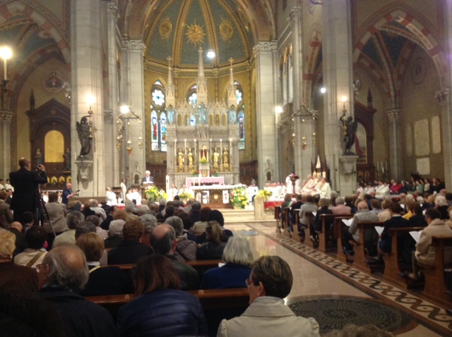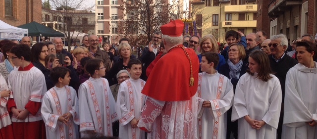 E, alla fine, prima della festa dei millecinquecento che affollano la Prepositurale – tantissimi i chierichetti di ogni età – e dell’incontro con tutti i sacerdoti del Decanato, ancora un pensiero rivolto direttamente ai presenti: «Siete una realtà decisiva, ma se non chiedete al Signore il dono di un’appartenenza più viva, ho il timore che le generazioni di mezzo, oberate da difficoltà, crisi, mancanza di lavoro e da una situazione violenta di cambiamento, non seguiranno al vostra strada, appunto perché rischiano di non vedere più il rapporto tra l’Eucaristia e il quotidiano. Stringete le fila per non perdere tutta la ricchezza del patrimonio della vostra fede. Questa è la vostra grande responsabilità verso le giovani generazioni e quella intermedia. Abbiate una grandissima cura per la famiglia, soggetto di evangelizzazione e chiesa domestica; comunicate tutto questo con semplicità e amicizia verso gli altri, con uno stile di accompagnamento anche verso le famiglie ferite».