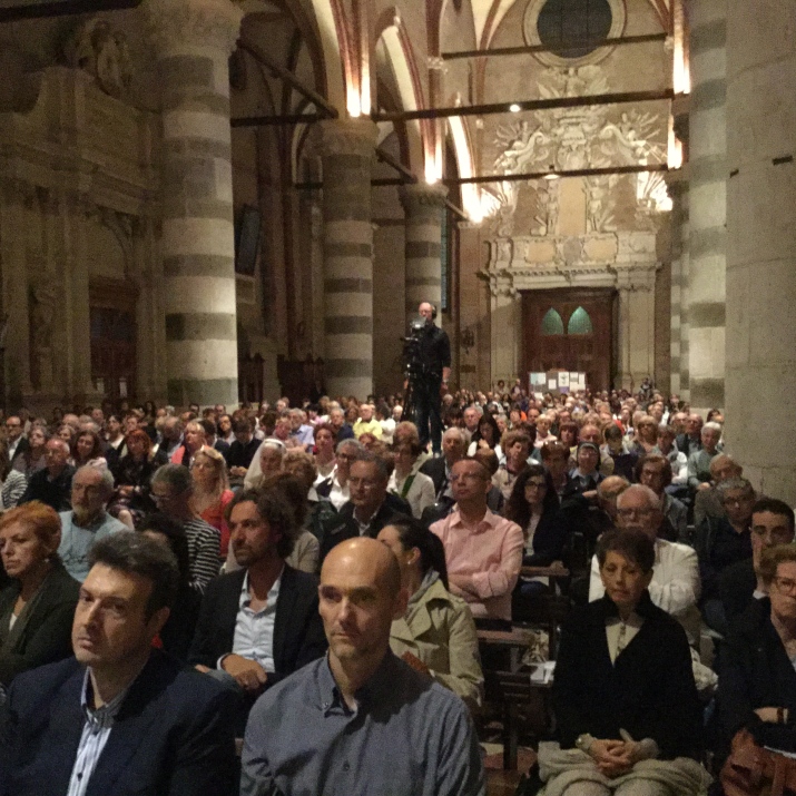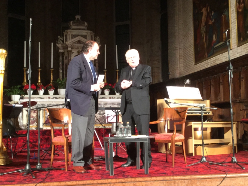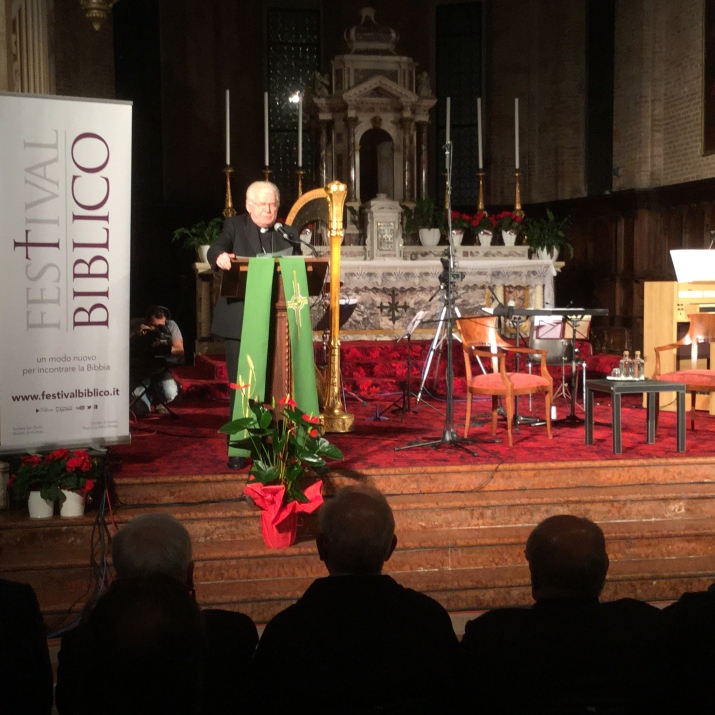 «Custodire il creato, coltivare l’umano»: questo il tema della Lectio magistralis che l’Arcivescovo di Milano, cardinale Angelo Scola, ha tenuto questa sera, nel Tempio di San Lorenzo a Vicenza, in occasione dell’inaugurazione del Festival Biblico. Il Cardinale ha dialogato col giornalista Armando Torno.