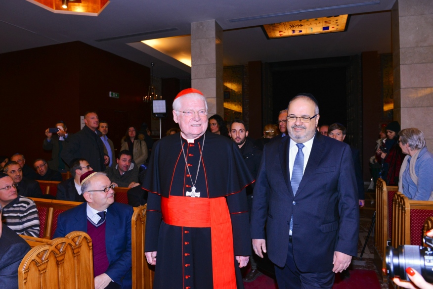 Poi lo sguardo è all’oggi: «Nell’attuale cambiamento d’epoca, il rinnovato rapporto tra ebrei e cristiani è chiamato all’improcrastinabile compito di edificazione di una “civiltà dell’amore” secondo il disegno del Creatore. Vorrei sottolineare il particolare e speciale vincolo spirituale che caratterizza le relazioni fraterne tra ebrei e cristiani e che trova nell’amore per Gerusalemme e per la “Terra di Santità” un centro ed un cuore pulsante di fede, di venerazione e di pellegrinaggio orante. Come cattolici siamo partecipi, in una dimensione cristiana ecumenica, dei sentimenti di religioso attaccamento alla Terra dei Padri e della Promessa che il popolo ebraico ha costantemente sviluppato nei millenni della storia d’Israele fino ad oggi. Preghiamo che Gerusalemme diventi sempre più la “Città della Pace” per tutti gli uomini e le donne che amano la pace. Siamo perciò profondamente addolorati per le violenze e gli attentati esecrandi che ancora di recente hanno ferito la santa città, uccidendo giovani vite e profanando il Santo nome divino. Così come deprechiamo le espressioni di antisemitismo che si ripresentano, purtroppo, in Europa. La storia del popolo ebraico e di quello cristiano si ergono a indelebile prova che non si dà libertà per la verità che non sia, nello stesso tempo, verità della libertà. In questo cammino comune di testimonianza reciproca sarà inoltre possibile intercettare l’istanza profonda dell’uomo post-moderno».