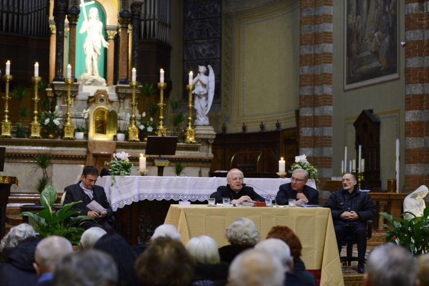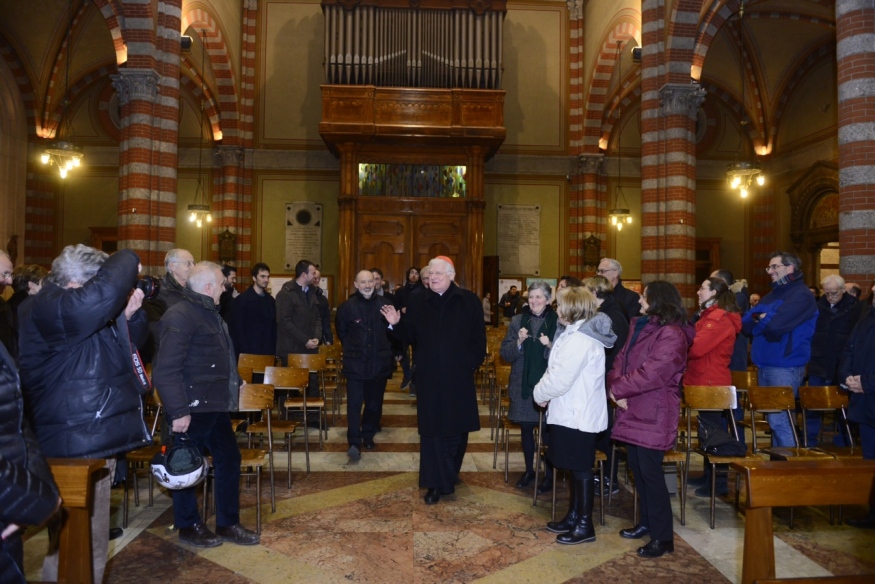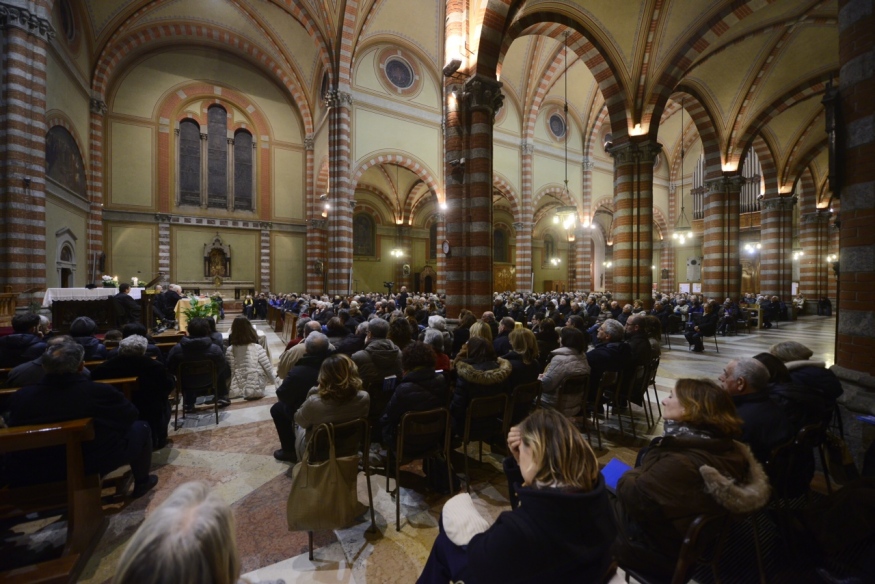 “Fuori”, tra i locali e il traffico di Corso Buenos Aires, si respira il tipico disordine urbano del sabato sera, dentro, tra le navate affollate, è un’assemblea ecclesiale quella che si riunisce, prolungamento dell’Eucaristia domenicale, fatta «di ascolto di fecondazione, di un parlare positivo, di comunicazione reciproca suscitata dalla presenza dello Spirito, di condivisione», auspica l’Arcivescovo.