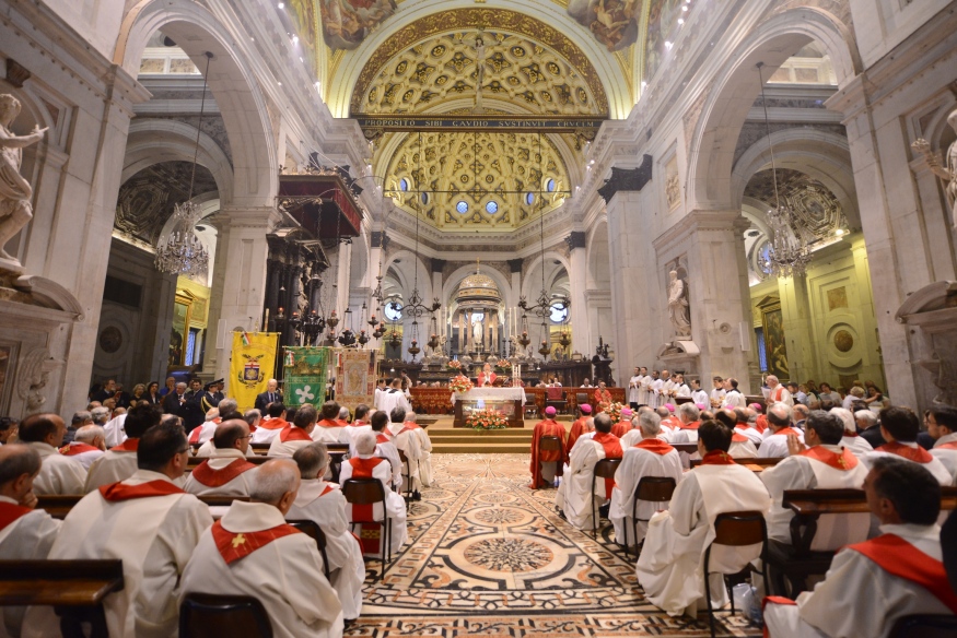 La consegna ultima – prima della Professione di fede corale e della solenne benedizione eucaristica – è, allora, a tornare a casa «con l’intima letizia della relazione con Gesù, sprofondando in Lui, con l’aiuto della Vergine, la nostra domanda di salvezza, come figli in Cristo di un Padre che ci aspetta, nella casa della Trinità, per il compimento definitivo della nostra vita. Stare davanti a Gesù sacramentato sia espressione massima di solidarietà e questa serata sia una lezione, una scuola di amore vero che converta i nostri cuori duri, le resistenze, la passività e il nostro peccato più grave, la dimenticanza di Dio nella nostra giornata».