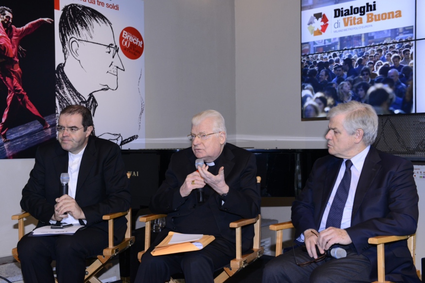 Sul palco con il Cardinale – che durante lo svolgimento dei “Dialoghi” non interverrà, proprio a garantire la totale libertà del dibattito – ci sono lo stesso Massimo Cacciari e il direttore del Piccolo Teatro Sergio Escobar, perché proprio al Teatro Studio Melato del Piccolo si terrà l’evento in sei tappe, dal 24 novembre al 2017.