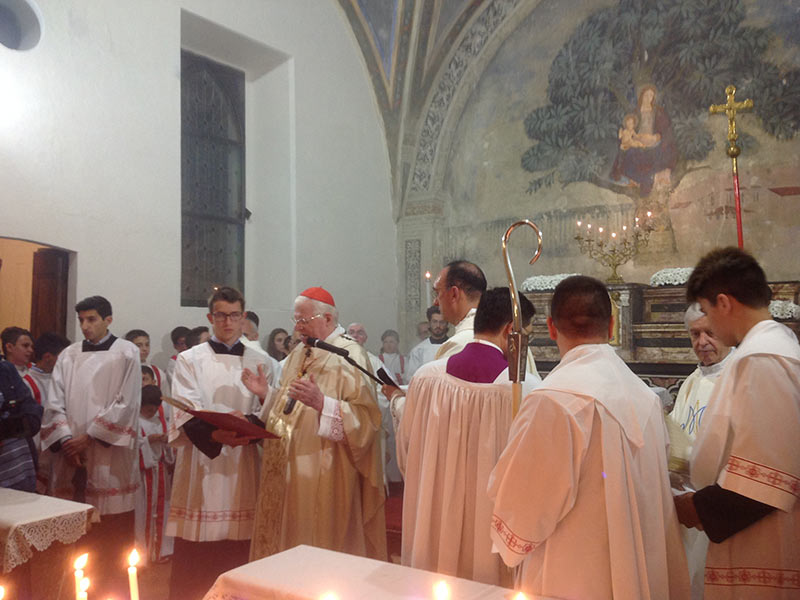 La gente sulla strada che sfida la pioggia battente, i Sindaci, i gonfaloni dei Comuni del territorio, la parrocchiale gremitissima, l’Inno alla Madonna dell’Albero, i 12 Kyrie che aprono il Rito come in ogni solenne celebrazione ambrosiana. Per i 500 anni del Santuario della Madonna dell’Albero, nell’anniversario esatto del mezzo millennio della sua dedicazione, a Carimate arriva il cardinale Scola, circondato dall’affetto dei moltissimi fedeli giunti da tutta la zona, per presiedere la Messa serale, concelebrata da una decina di sacerdoti nella chiesa di San Giorgio e Maria Immacolata. «Un momento di particolare grazia, misterioso e affascinante – dice don Arnaldo Mavero, responsabile della Comunità pastorale San Paolo di Figino Serenza e decano di Cantù -. In questa celebrazione presieduta dal Vescovo si rivela, in modo speciale, la presenza della Chiesa. Grazie dall’intera Comunità della Serenza: che la Madonna ci accompagni e ci aiuti ad avere sempre limpida la coscienza della appartenenza alla Chiesa umile e povera».