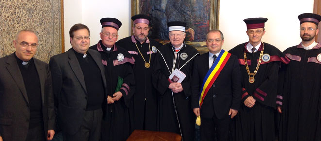 Questa la motivazione dell’onorificenza: «Il conferimento di questa dignità onorifica è l’espressione dei contributi portati da Sua Eminenza all’approfondimento delle scienze teologiche, allo sviluppo della formazione teologica universitaria e alla grandezza della sua missione pastorale, nella quale il dialogo tra la religione e la cultura svolgono un ruolo essenziale. (…) È un grande onore per l’Università Babeş-Bolyai di Cluj-Napoca, in particolare per le quattro Facoltà di Teologia (cattolica romana, greco-cattolica, ortodossa e protestante), di accoglierla oggi tra i suoi dottori honoris causa, di rendere omaggio a una personalità religiosa e intellettuale che è riuscita a incidere le forme del mondo contemporaneo nelle sue strutture spirituali, educative, culturali e sociali». Una prima laudatio è stata pronunciata da monsignor Cristian Barta, preside della Facoltà di Teologia Greco cattolica; una seconda da monsignor Jozsef Marton , preside della Facoltá di Telogia Romano cattolica.