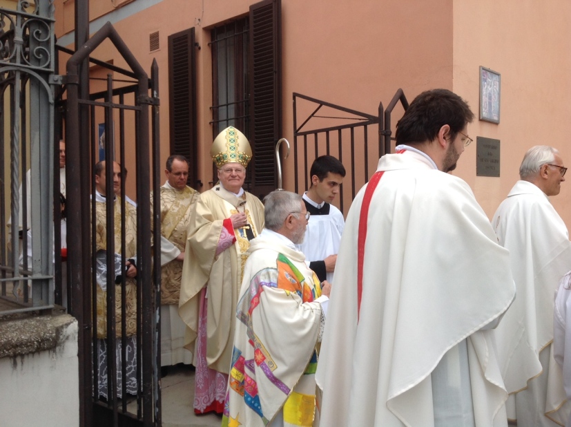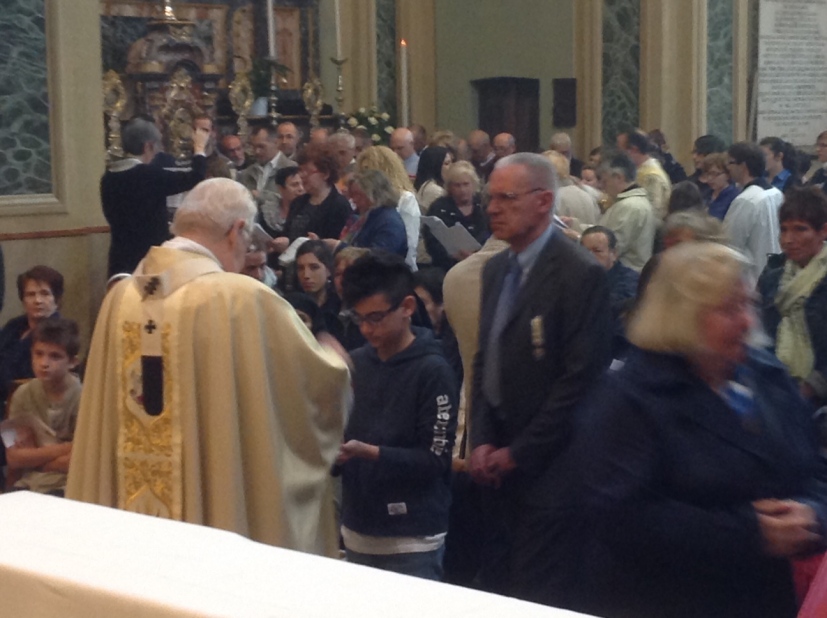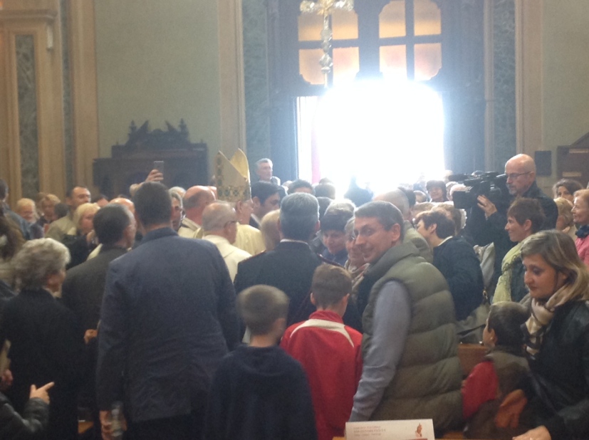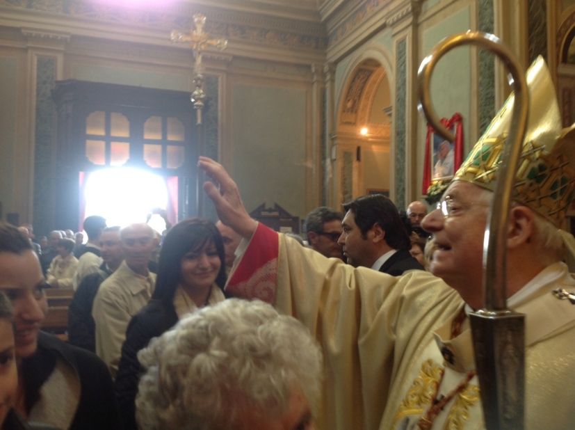 Il cardinale Scola è a Settala, paese cresciuto negli anni, ma sempre a misura d’uomo e circondato dalle feconde campagne della Bassa. Paese di Vescovi ambrosiani, San Senatore nel V secolo ed Enrico da Settala nel XIII; Comunità pastorale, intitolata a un santo, Giovanni Paolo II, nel cui primo anniversario di Canonizzazione si celebra, appunto, l’Eucaristia presieduta dall’Arcivescovo che, per l’occasione, indossa il cingolo appartenuto a papà Wojtyla, donato a don Gilberto Orsi, responsabile della Comunità. È lui che dice, salutando il Cardinale di cui è stato compagno di studi in Seminario: «Carissimo Angelo, la nostra Comunità pastorale, nata il 7 dicembre 2011, ti accoglie con affetto grande. Oggi vogliamo ricordare, con il primo anniversario di San Giovanni Paolo II, anche il centenario della chiesa dedicata a Sant’Ambrogio – fu consacrata dal cardinal Ferrari il 22 agosto 1915 –, il quarantesimo di presenza di don Giovanni Brovelli e il cinquantesimo di ordinazione di don Mario Marangoni. Più volte interrotto dagli applausi, don Gilberto, con la sua bella stola multicolore da lui stesso disegnata, conclude: «come vedi le occasioni di festa non mancano».