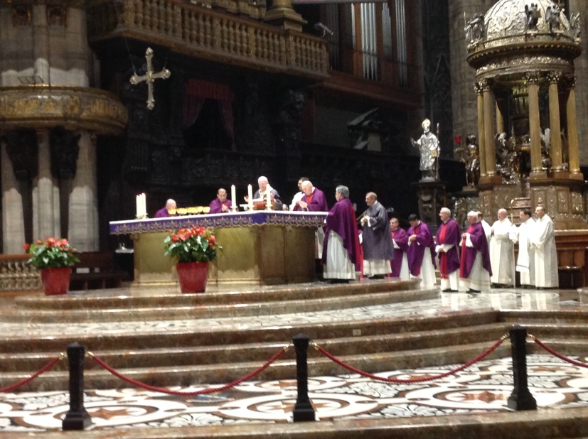 A tutti si rivolge direttamente il Cardinale in riferimento alla Parola di Dio appena proclamata nella Liturgia: «L’offerta di salvezza, rivolta ad ogni uomo, lega i tre brani di questa II Domenica che ci definisce Figli del Regno. Un regno dell’amore guadagnato da Cristo attraverso il dono totale di sé sulla Croce. Questa decisione di bene da parte di Dio per l’uomo, di ogni tempo e spazio, è già evidente nella Lettura del profeta Baruc e, a sua volta, Giovanni Battista, l’ultimo dei profeti, annuncia il definitivo ingresso di questa salvezza concretissima nella storia», dicendo “Viene colui che è più forte di me. Egli vi battezzerà in Spirito Santo e fuoco”. Battesimo radicale che nessuno può toglierci o togliersi. In questo momento il nostro affetto va ai moltissimi battezzati che hanno perso la strada di casa», scandisce Scola. È, poi, san Paolo, nella Lettera ai Romani, affermando che la salvezza portata da Gesù è per tutti, a definire il fattore unificante della Liturgia della Parola.