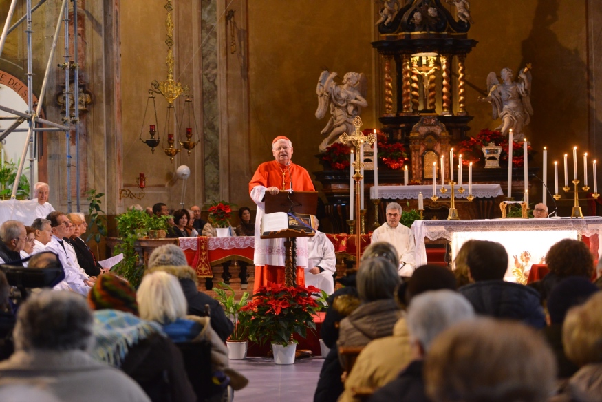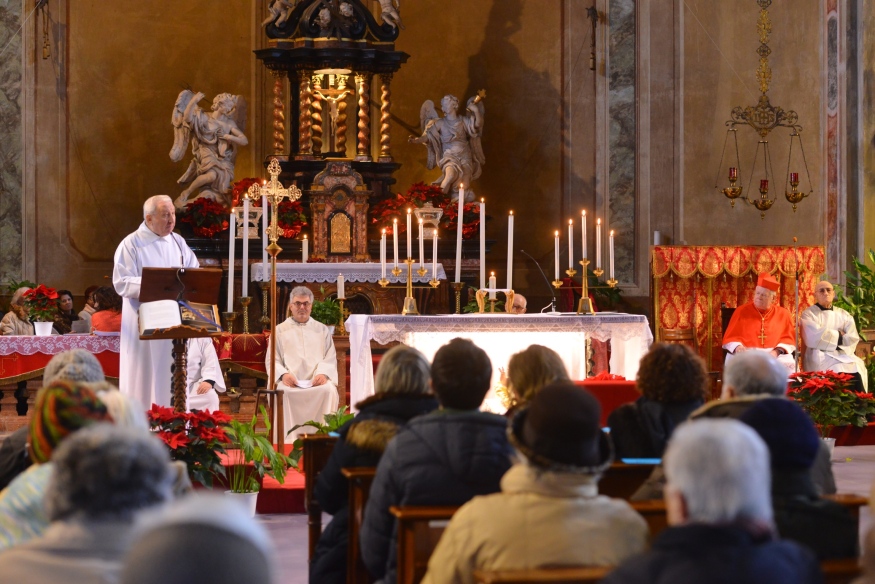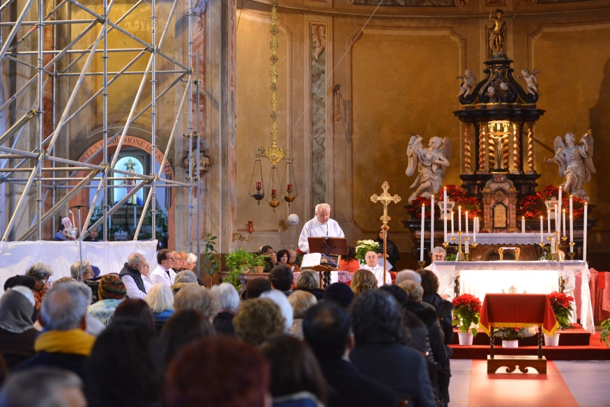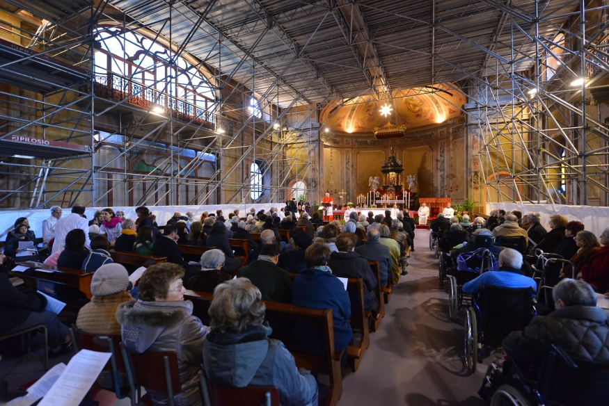 Il cardinale Scola, come tradizione, visita il Pio Albergo Trivulzio e dice così a tutti coloro che si raccolgono con lui per il Te Deum dell’ultimo giorno dell’anno, cantato nella chiesa settecentesca interna alla struttura in cui i ponteggi dei restauri paiono quasi una moderna architettura in quella antica. Ci sono i degenti, i medici, gli indispensabili volontari, i parenti; accolgono l’Arcivescovo il sindaco di Milano, Giuseppe Sala, Maurizio Carrara, presidente dell’Azienda di Servizi alla Persona Istituti Martinitt e Stelline e Pio Albergo Trivulzio (ASP IMMeS e PAT), che oggi rappresenta il più importante polo geriatrico nazionale è uno dei più grandi d’Europa, e il direttore generale Claudio Sileo. Concelebrano il Rito, il cappellano rettore, don Carlo Stucchi, il responsabile del Servizio Diocesano per la Pastorale della Salute, don Paolo Fontana, il Decano del Decanato “Vercellina”, don Serafino Marazzini e il don Sante Torretta, il parroco di San Pietro in Sala nel cui territorio si trova il Trivulzio.