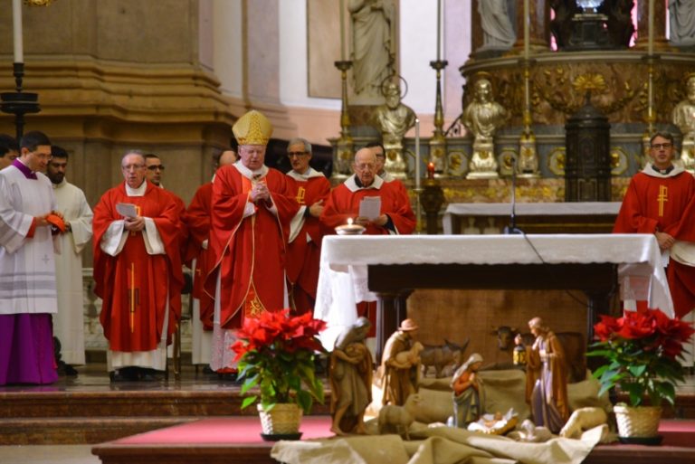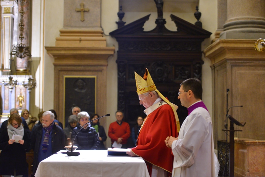 «Pochi anni prima San Carlo aveva affidato la chiesa alla Compagnia di Gesù. Questa veneranda tradizione è ripresa sicuramente con il ritorno dei Gesuiti dopo la guerra». Da qui il saluto dell’Arcivescovo ai Padri della Comunità gesuita, molti dei quali concelebranti, con il loro nuovo Superiore, padre Maurizio Teani.