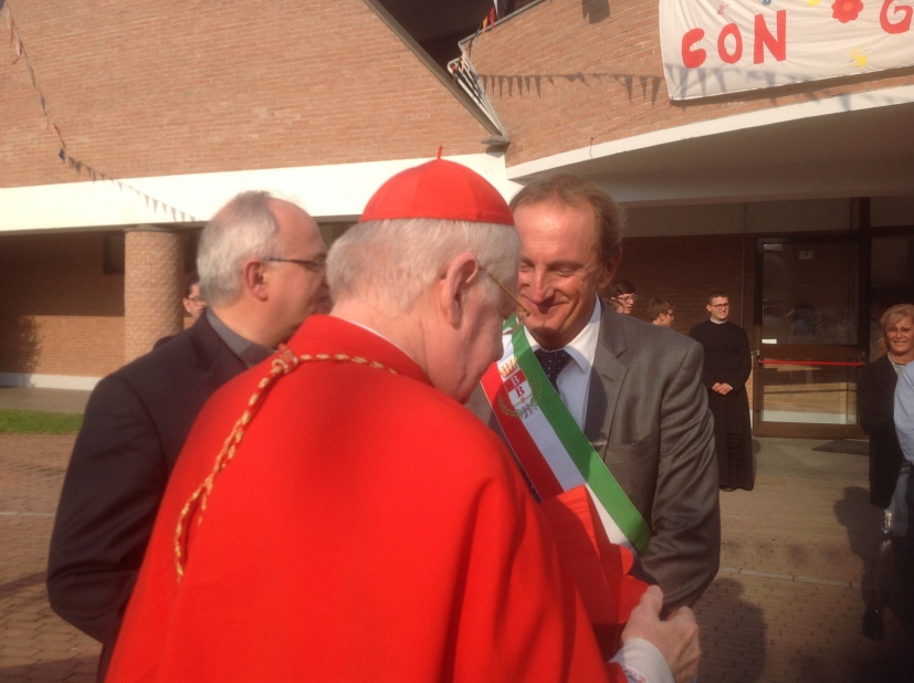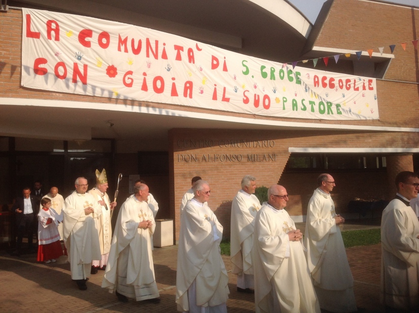 Dalla seconda lettura paolina, la possibilità di fare un passo in più: «conducendoci a dire che non veniamo nel tempio come ospiti, ma come concittadini dei santi e familiari di Dio. La vostra chiesa dedicata alla Santa Croce, non è solo un edificio, ma è un aiuto a stabilire un rapporto con i Santi, ad avere come pietra d’angolo Gesù Cristo stesso, in modo tale che la comunità che è fatta dalle pietre vive che voi siete, sia abitazione di Dio per mezzo dello Spirito. Così la nostra vita trova una svolta», sottolinea Scola.