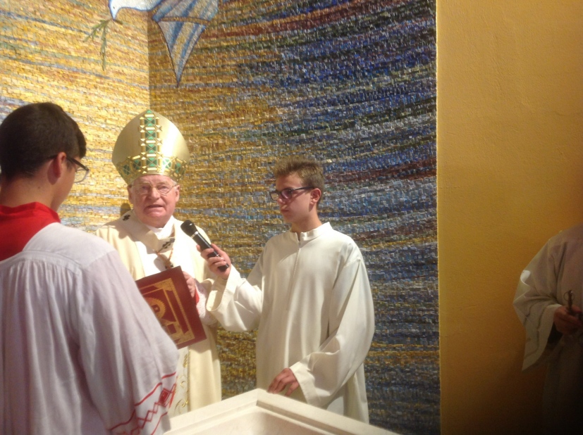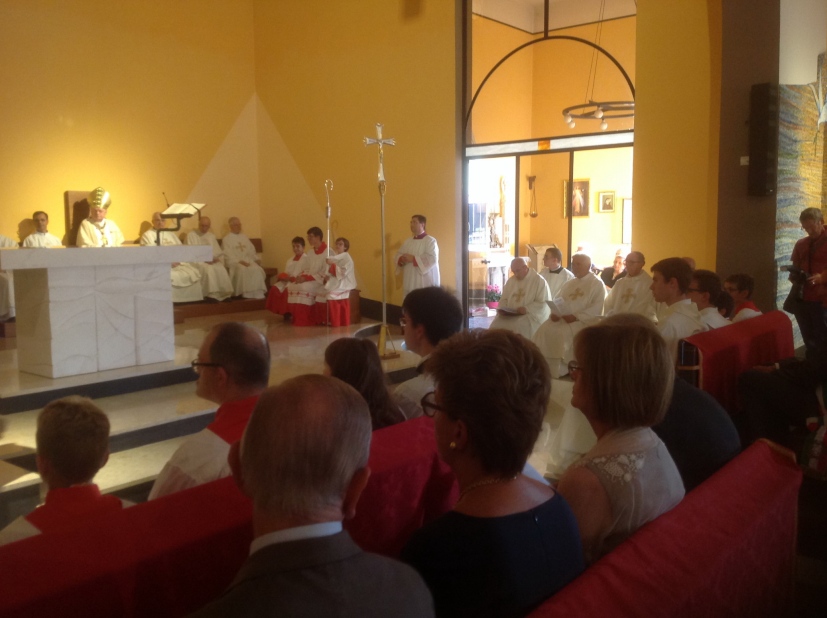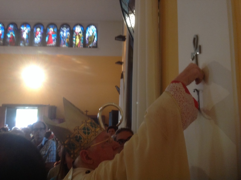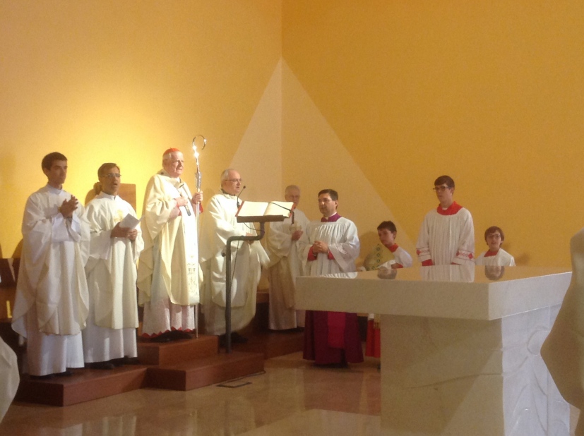 Poi,le Litanie dei Santi, la preghiera di Dedicazione, l’Unzione dell’altare e delle pareti della chiesa, l’Incensazione, la copertura dell’altare e il tempio che si riempie di luce.