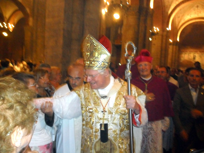 A conclusione della sua omelia, l’arcivescovo (che è stato ringraziato per la presenza a Pavia dal vescovo Giovanni Giudici) ha ricordato una frase pronunciata da Papa Benedetto XVI a Pavia, al Collegio Borromeo, in occasione della sua visita del 22 aprile 2007: «In quest’ora ringraziamo Dio per la grande luce che si irradia dalla sapienza e dall’umiltà di sant’Agostino e preghiamo il Signore affinché doni a tutti noi, giorno per giorno, la conversione necessaria e così ci conduca verso la vera vita» Al termine della messa, il cardinale Scola ha recitato, insieme ai numerosi fedeli che gremivano la basilica di San Pietro in Ciel d’Oro, una preghiera dedicata a Sant’Agostino. Poi si è soffermato per alcuni secondi in silenzio davanti all’urna di vetro che custodisce le reliquie del vescovo di Ippona. Infine l’abbraccio dei pavesi, che l’hanno ringraziato per la sua presenza e le sue parole: tante strette di mano, il sorriso dell’arcivescovo e le sue carezze ai bambini.