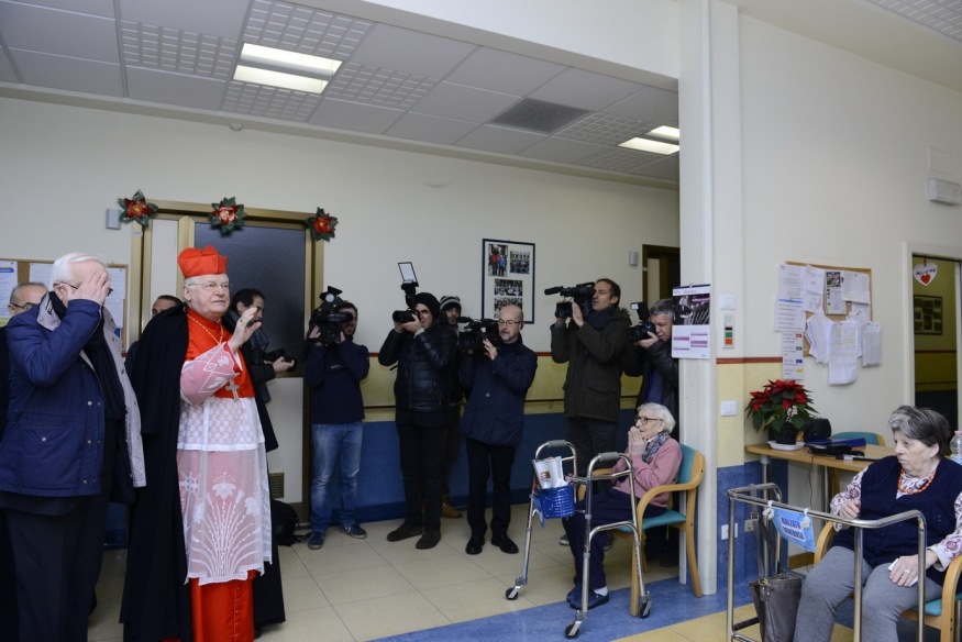 «La figura di Maria e di Giuseppe debbono insegnarci a essere uomini e donne veri, che praticano ciò che Paolo raccomanda nella Lettera ai Filippesi: “siate lieti”. Il loro sacrificio non è stato di poco conto, la malattia che costa a voi e ai vostri cari, il sacrificio di Istituzioni come la Fondazione Don Gnocchi, che devono proporre un’accoglienza dignitosa fino all’abbraccio con il Padre, il dolore di molti non impedisce di dire, “siate sempre lieti”. Perché da qui consegue la pace nei nostri cuori, nelle Comunità cristiane, nella società, nel mondo così tragicamente provata anche attraverso l’offerta della vita di tanti uomini di religione».