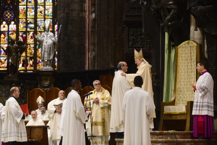 È Cristo, infatti, che ha allargato l’idea della famiglia e della fraternità, che non è più solo quella del sangue, ma prende al suo interno tutti coloro che lo seguono, che cercano e indagano il senso della vita. Ma come ha potuto fare questo il Figlio dell’uomo? «Donando interamente se stesso sulla croce resa gloriosa con il suo amore profondo che diventa così, per ciascuno di noi, motivo di speranza e ci permette di guadagnare un senso del vivere nonostante i limiti dell’uomo, le prove, che qualcuno sperimenta in modo più drammatico», sottolinea Scola. L’invito è a vivere, soprattutto in chi ha la responsabilità del carisma sacerdotale ispirato al Santo, «questa nuova familiarità, facendo sentire “di casa” chi è nel bisogno grave».