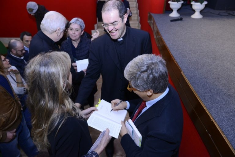 Infine l’autore, Andrea Tornielli, che avvia il suo breve intervento da una risposta del Papa – «anche il riconoscerci peccatori è una grazia in cui bisogna credere» – e che, colpito dalla capacità del Vescovo di Roma di avere a cuore ogni persona che gli si avvicini (anche i giornalisti), spiega: «Quando il Papa dice che la Misericordia ha a che fare non solo con il rapporto con Dio, ma con la vita civile e la società, dice la verità. Senza una visione simile non si raggiungerà mai una pace vera, anche nelle nostre comunità. Riconoscere i nostri limiti ci permette di riscoprire la dinamica dei Vangeli, in cui Dio ci precede, ma sta a noi fare almeno un passo. Credo che chiunque abbia fatto l’esperienza di essere perdonato e, per grazia, di perdonare, capisce che il vantaggio non è per il perdonato, ma per chi perdona. Si sta meglio. In questo abbraccio di perdono donato gratuitamente, siamo aiutati a riscoprirci sempre più piccoli e così, ogni volta, sempre più perdonati».