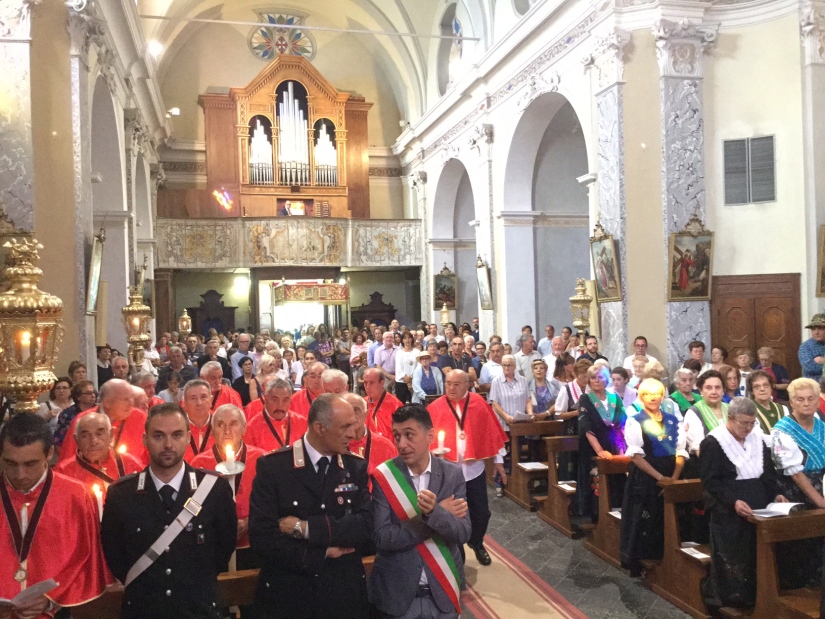 Tradizioni ben visibili nella chiesa che non è riuscita a contenere tutti i fedeli: le donne con il costume tipico, la Confraternita delle candele (appena rinata) con i suoi 35 componenti (rigorosamente maschi) in uniforme.