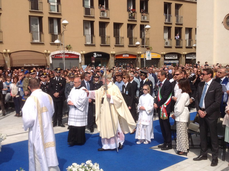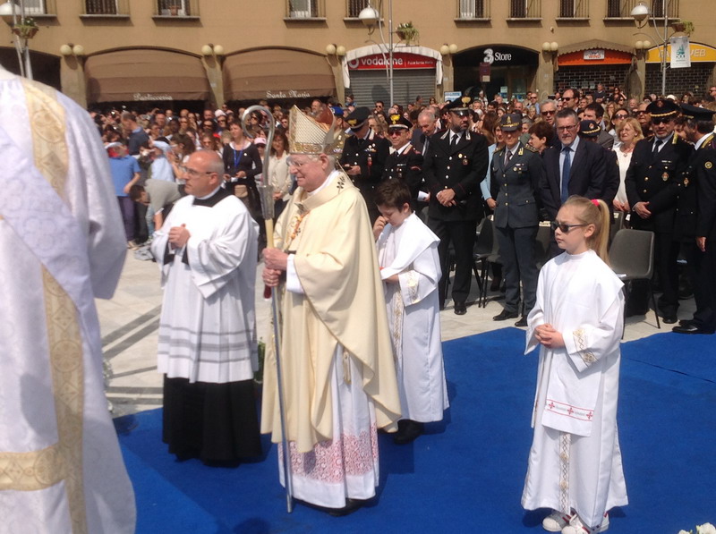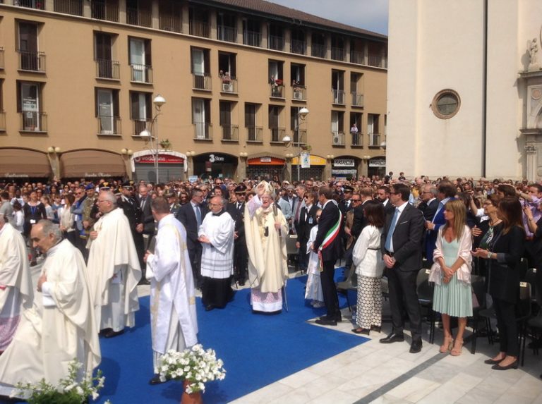 Di gratitudine commossa per la scelta di dilatare idealmente le mura del Santuario alla piazza (dove la Celebrazione si svolge) «come se diventasse una Cattedrale all’aperto», parla l’Arcivescovo che presiede il Rito concelebrato dai sacerdoti della città. «È giusto che noi rendiamo grazie alla Madonna dell’Aiuto perché la storia di Busto è impastata di questa presenza».