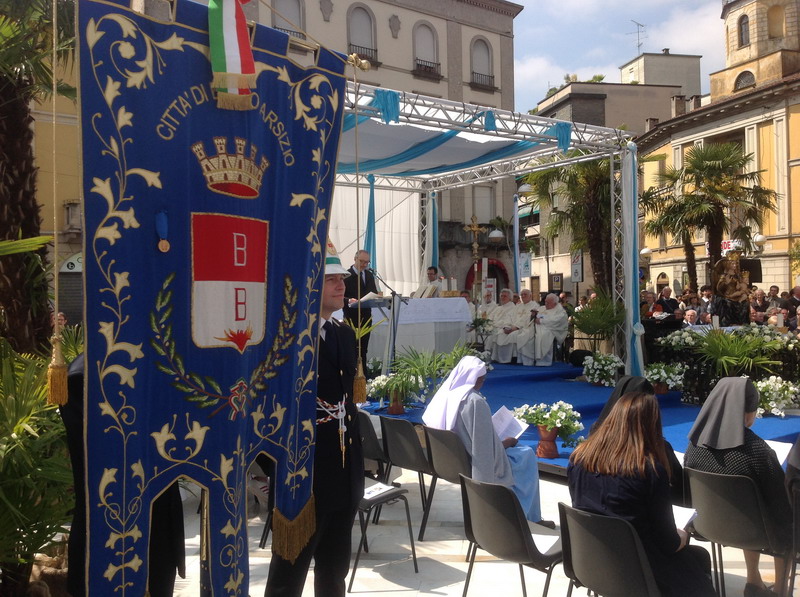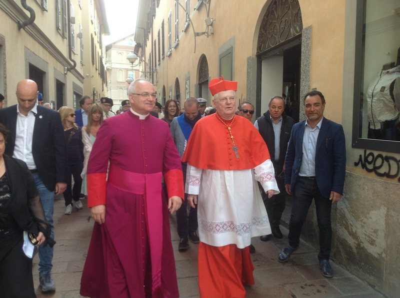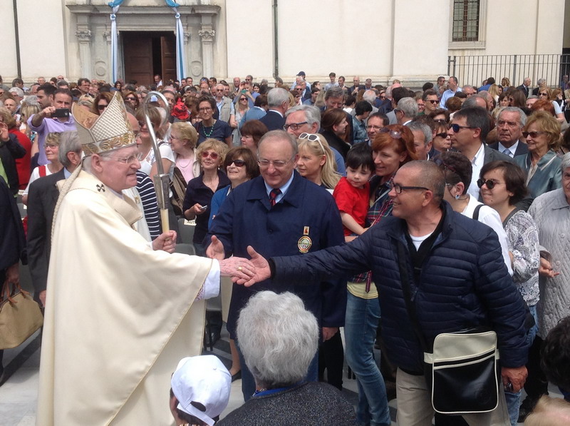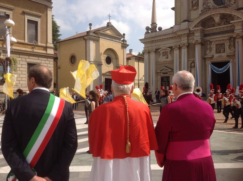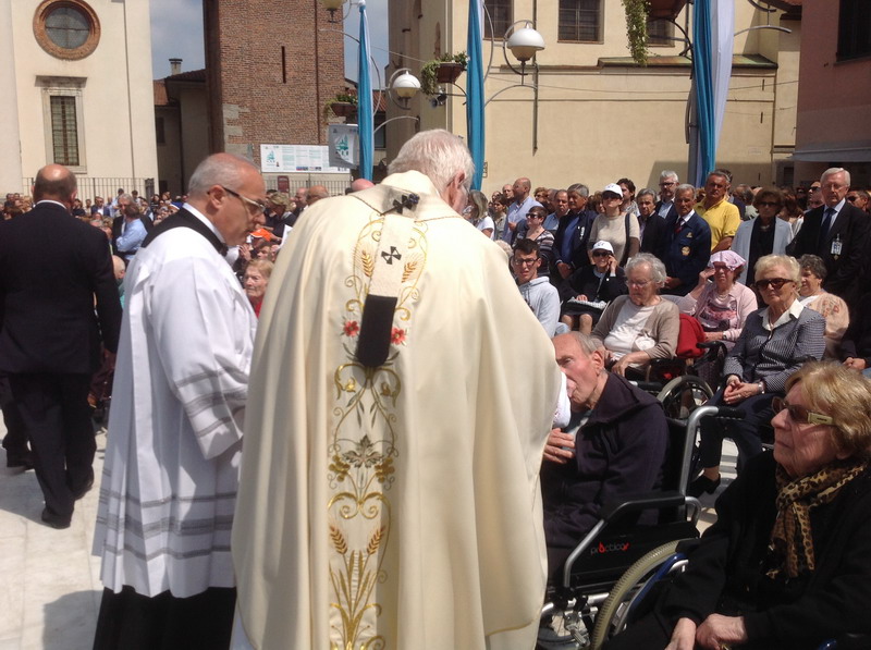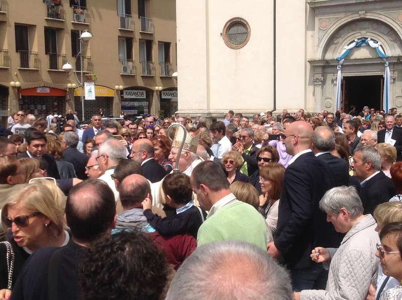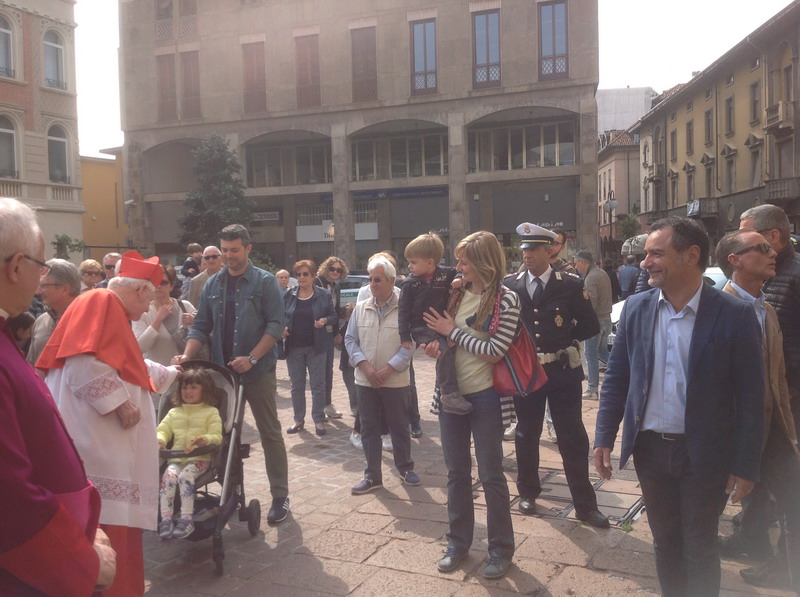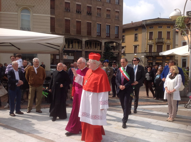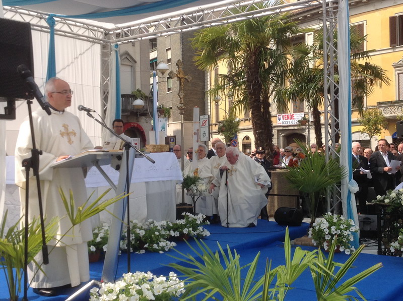 Poi, l’Arcivescovo cammina, fermato spesso dai bustesi, per il breve tratto che separa la prepositurale di San Giovanni Battista dal Santuario dove si inginocchia davanti alla statua della Vergine.