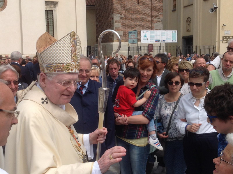 Il pensiero è per la nostra Chiesa locale nel suo complesso: «L’espressione più bella della natura ambrosiana della nostra Chiesa è testimoniata dalla figura di Ambrogio che fu, prima, un’autorità civile e religiosa, poi. Da lui è venuto il senso del quotidiano, dell’incarnazione, perché abbiamo nel nostro DNA il senso che Cristo centra con tutti gli aspetti della vita: con gli affetti, la famiglia, l’educazione dei figli, con il lavoro, in profondissima trasformazione come voi provate sulla vostra pelle. Vorrei dire che questo è un carattere specifico della nostra Chiesa per cui potremmo chiamarla “Chiesa dell’incarnazione”. Siamo qui a venerare la Madonna dell’Aiuto che vi ha protetto fin dai tempi della peste perché Lei è il punto sorgente di tale incarnazione, prendendo Gesù figura umana dal suo grembo».