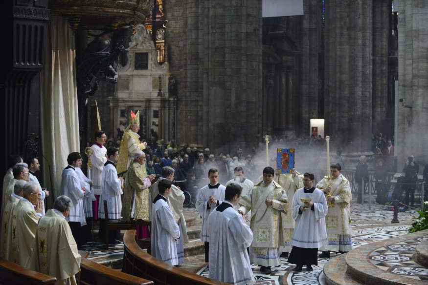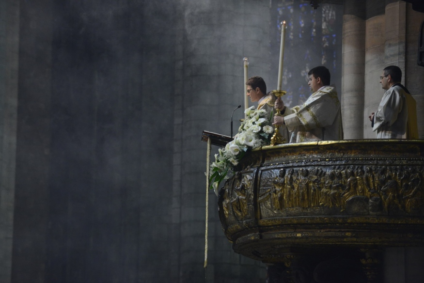 Nel giorno della «festa che dà origine a tutte le feste», come recita il Prefazio ambrosiano del domenica di Pasqua, è un Duomo affollato di cristiani – come accade in tante altre parti del mondo – quello in cui risuonano le parole con cui il cardinale Scola, nel Pontificale da lui presieduto nella mattina, appunto, di Pasqua, esprime la gioia per il Risorto che si fa richiamo a leggere con occhi e consapevolezza nuova il presente.