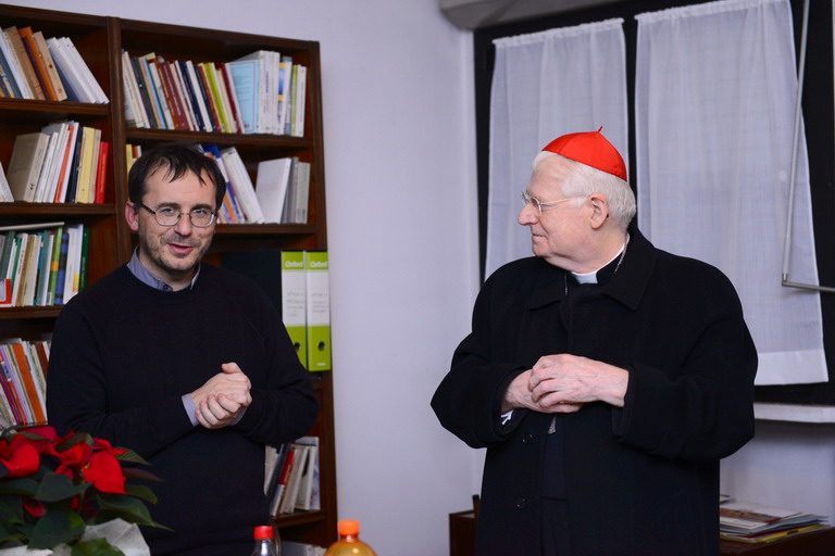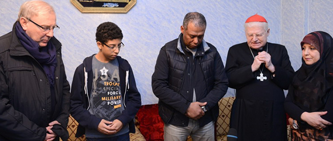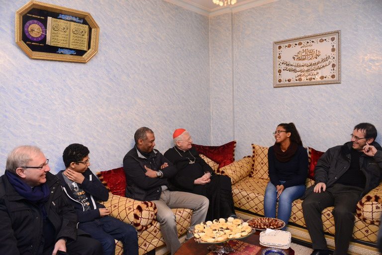 Poi, forse il momento più bello, nel piccolo, ma dignitoso salotto di Mohammed e Samir, dove ancora si prega con il Cardinale che recita un Padre Nostro e la famiglia islamica che recita la prima Sura del Corano; ci si scambia doni: il capofamiglia che ha appena compiuto cinquant’anni, offre dei bicchieri artistici con la lavorazione tipica mediorientale, l’Arcivescovo lascia alcuni testi e l’immagine natalizia.