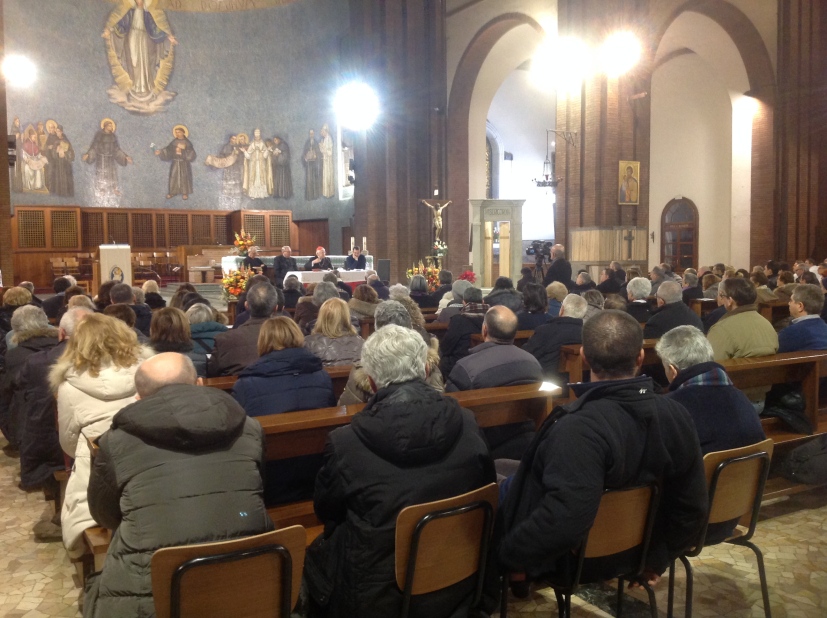 «Se Gesù Cristo non ci premesse non saremmo qui». Il cardinale Scola saluta così i fedeli laici, i religiosi e i sacerdoti dei due Decanati milanesi Forlanini e Romana Vittoria, riuniti per la Visita pastorale feriale nella grande chiesa della Beata Vergine Immacolata e Sant’Antonio. Zone di periferia e Decanati molto abitati, che comprendono l’uno sei parrocchie e l’altro otto, per centodiecimila abitanti (Romana-Vittoria è il più popoloso della città). Accanto all’Arcivescovo i due decani don Augusto Bonora e don Maurizio Pezzoni.