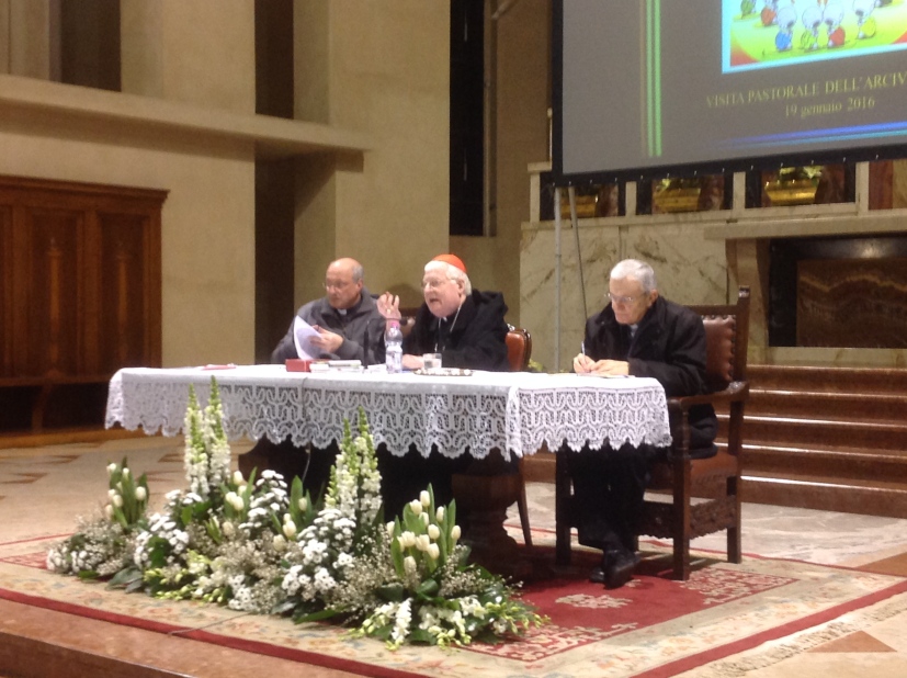 «La mentalità distratta è il punto debole di oggi, perché la nostra è un’epoca di oblio del senso della storia, del valore della fedeltà, di Dio stesso, di Gesù. Domandiamoci che peso ha il Signore nella mia giornata, Lui che vuole bene a ciascuno di noi, che ci ha scelti a uno a uno prima che fossimo concepiti e che ci accompagna tenendoci la mano sotto il mento. L’io distratto è, appunto, l’io dimentico di questa presenza. Il primo modo per prendere sul serio la misericordia di Dio, che il Giubileo ci fa provare in questo anno, è liberarci da tale smemoratezza, magari invitando parenti e amici, battezzati, al gesto umile e semplice di oltrepassare la Porta Santa che ci libera da questa sorta di “Icmesa” (ossia di avvelenamento) dello Spirito. È vero, infatti, che c’è tanto bene, ma è la dimenticanza di Dio che ci impedisce di seguire Gesù nella comunità cristiana, pur con tutti i nostri limiti, e non fa conoscere la vera natura dell’amore che ha in sé il “per sempre”». Un tema – questo – carissimo al Cardinale che ammonisce: «Ci vuole serietà negli affetti e nel lavoro, equilibrio nella festa. Non dobbiamo abbatterci per le difficoltà inedite di oggi, perché questo è il tempo che Dio ci ha dato e non è un tempo “delle passioni tristi”, come diceva Spinoza, ma della speranza. Se siamo fraternamente solidali in Cristo, se viviamo la vita parrocchiale e, con le debite distinzioni, quella civile aiutandoci, abbiamo già visto la strada per non perdere il dono immenso dell’incontro con Gesù e perseverare in esso».
