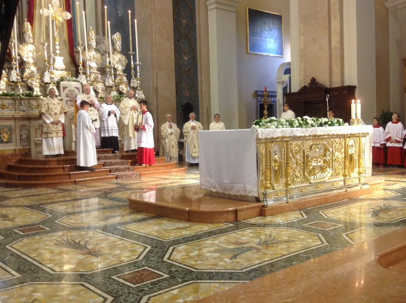 Una breve Processione con sacerdoti e chierichetti e l’ingresso nella bella e ariosa chiesa di sant’Anastasia con tanti fedeli che lo attendono. Inizia così, la visita a Villasanta del cardinale Scola che giunge per presiedere la Celebrazione eucaristica in vista dell’avvio della Comunità Pastorale che, a settembre, riunirà le tre parrocchie di Sant’Anastasia, appunto, San Fiorano e San Giorgio al Parco nel comune di Biassono. Come ricorda, nel suo indirizzo di benvenuto, il parroco don Alessandro Chiesa, che concelebra unitamente al vicario episcopale di Zona V, monsignor Patrizio Garascia, al prevosto di Monza, monsignor Silvano Provasi e ai sacerdoti del territorio, tra cui don Eugenio Ceppi festeggiato nei suoi 70 anni di Ordinazione.