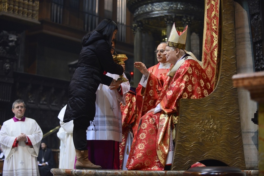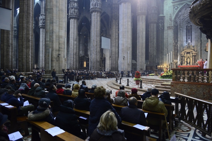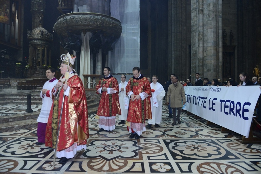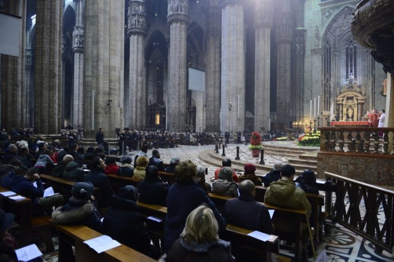 E il pensiero è subito per una fratellanza autentica, la sola capace di promuovere una pace autentica e duratura. In Cattedrale ci sono anche gli aderenti alla Comunità di Sant’Egidio che, con altre aggregazioni e movimenti ecclesiali, ha promosso, come ogni anno, la Marcia per la Pace conclusasi in Duomo e definita dal Cardinale un «gesto pubblico assai decisivo». Segno di una conversione dei cuori e della mente cui ci obbliga la nascita del Dio Bambino che è, sottolinea l’Arcivescovo, «condizione indispensabile per l’umana crescita». Quella che nasce dallo «stare davanti all’evento del Natale» con stupore, perché, come nota il Papa proprio nel Messaggio per la Giornata 2015, intitolato “Non più schiavi ma fratelli”: «Non si diventa cristiani senza l’esercizio della libertà personale, cioè senza convertirsi liberamente a Cristo».