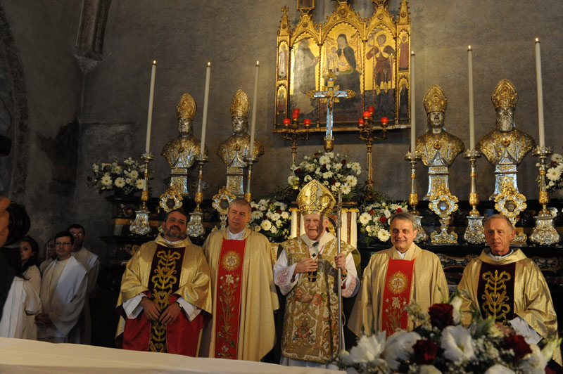 «700 anni di storia e la vostra presenza oggi, sono il segno che la Chiesa, nonostante gli errori dei suoi uomini per cui occorre chiedere perdono, non viene mai meno. Dobbiamo essere grati a papa Francesco che vuole chiamare tutti, in un abbraccio di misericordia, alla sobrietà di vita, alla chiarezza, al superamento della corruzione, ma soprattutto alla centralità di Cristo». . Due le conseguenze, che il Cardinale affida ai Varennesi e idealmente all’intera diocesi: «nell’unico fondamento che è Cristo, noi, le pietre vive di questa Chiesa, non possiamo scalzare Dio dalla nostra esistenza».