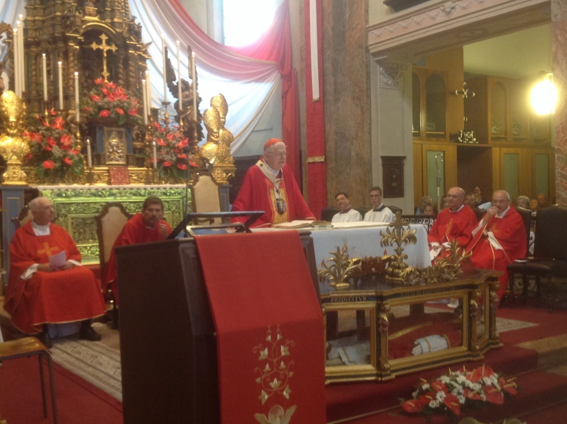 Infine, la consegna con le parole Madre Teresa di Calcutta, negli stessi momenti dell’omelia canonizzata dal Papa in piazza San Pietro, che così rispose a un giornalista sul farsi prossimo delle sue giovani Missionarie della Carità: “Esse amano Gesù e trasformano questo amore in un criterio di azione”. «Questo è il senso del convertitevi del Vangelo di oggi». Suggerimenti ripresi dal Cardinale a conclusione della Messa: «Si è scavato un fossato tra la fede e la vita. Qui c’è un grande lavoro da fare personalmente e comunitariamente: lasciar trasparire, nei nostri rapporti comuni e informali, come Gesù illumina tutta la nostra vita terrena fino alla morte. Bisogna essere particolarmente attenti all’educazione dei giovani e dei ragazzi che inizia in famiglia – grande l’importanza dei nonni – e imparare ad amare: ecco il senso della vita della parrocchia, dei movimenti e dei gruppi. Occorre che il cristiano faccia vedere con umiltà, rispettando il punto di vista dell’altro, la propria posizione».