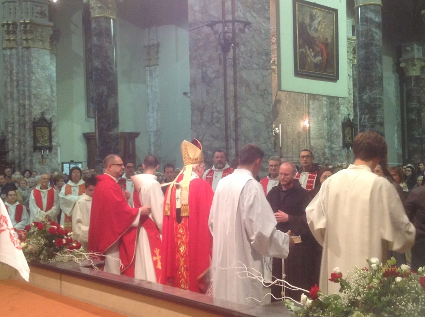 «Uscire da questa chiesa è questo partire. I discepoli sono pronti a dare la vita perché lo hanno visto risorto e questo vale anche per noi, non c’è differenza sostanziale. Occorre  essere certi della compagnia del Signore – che non si è allontanato dal suo popolo  ascendendo al cielo – perché la Chiesa stessa è compagnia guidata al destino della Trinità, la grande casa dalle porte aperte. Praticate con generosità le opere di misericordia, fatevi missionari tra i missionari, testimoni. La bellezza di Cristo non può essere negata alcun modo o strappata dal volto del cristiano, perché Dio si è fatto, con Gesù, compagno, amico, fratello di ognuno attraverso una nuova parentela. Se siamo umili e semplici nella fede possiamo essere un segno di creatività e libertà per ogni nostro fratello. La Missione sia come una rugiada del mattino per questa importante città».