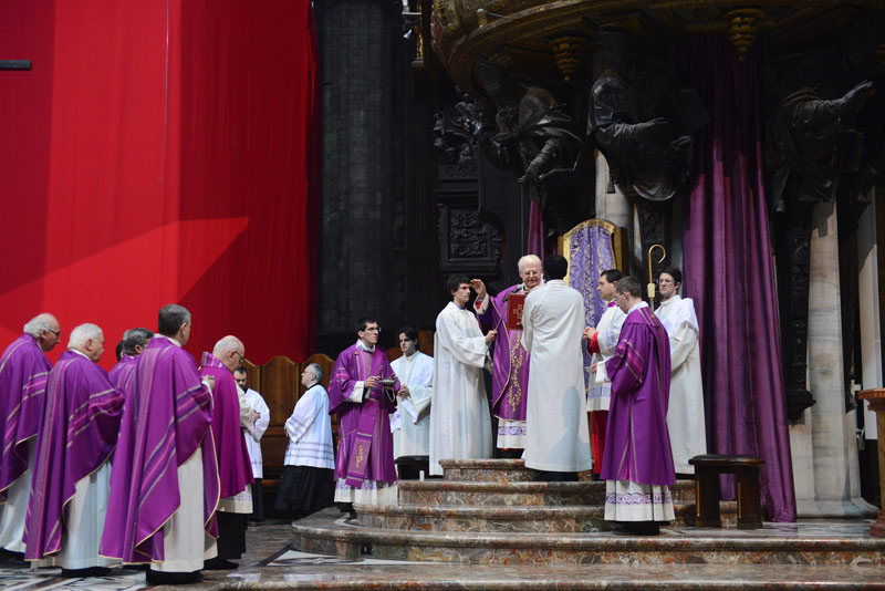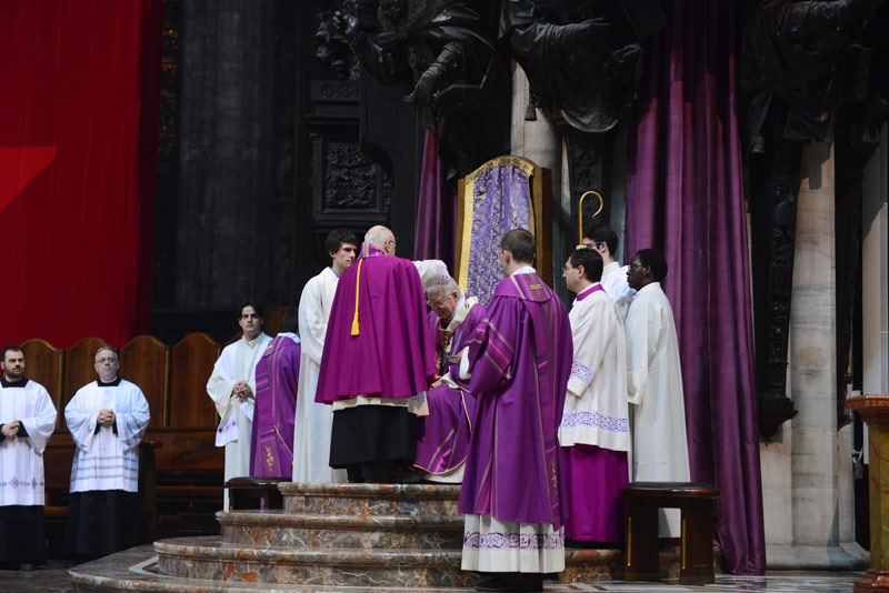 E, in conclusione, dopo un richiamo del Cardinale ancora «alla preghiera quotidiana» – preziosa in questo tempo – si rinnova il Rito dell’imposizione delle ceneri, che tra le navate del Duomo dura a lungo per i moltissimi fedeli che ordinatamente, in molte diverse file, convergono verso l’altare maggiore per riceverle.
