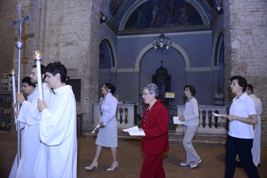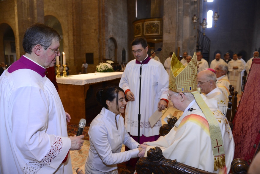 Poi,  i  momenti  dell’intensa  liturgia  di  Consacrazione,  con,  il  “Sì, lo voglio”,  le  Litanie  dei  Santi,  il  rinnovo  del  proposito  di  castità,  la  preghiera  di Consacrazione, la consegna dell’anello  – che esprime l’unione sponsale con Cristo  – e del  Libro delle Ore.