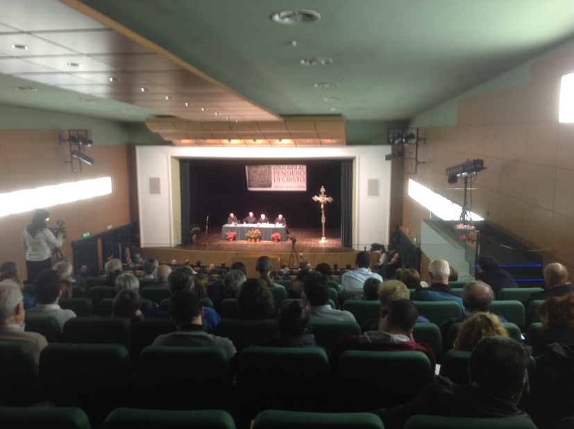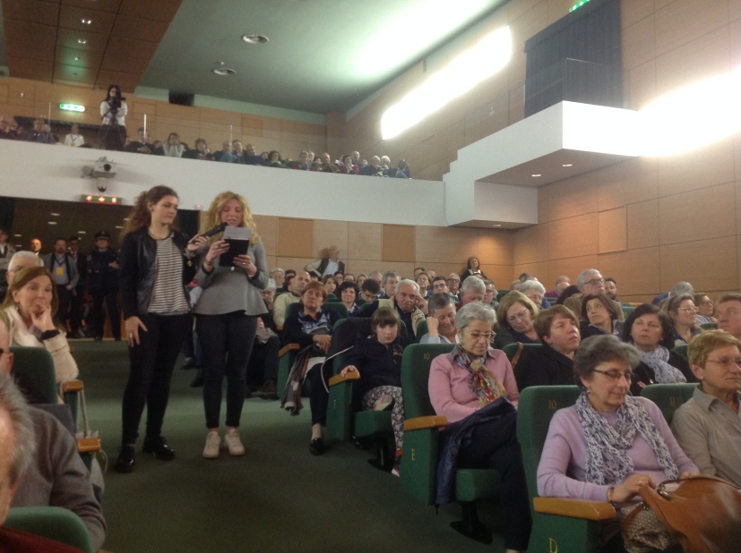 Lo scambio della pace tra il folto pubblico apre l’assemblea. «Come negli altri anni abbiamo risposto alla crisi, oggi dobbiamo rispondere alla sfida educativa con gli oratori e le nostre comunità – dice il decano don Luigi Caimi, che siede accanto all’Arcivescovo col Vicario di Zona V monsignor Patrizio Garascia e il parroco di Bovisio don Giuseppe Vergani -. L’educarsi è l’anello debole di questa epoca e, nell’educare, dobbiamo partire dalla legalità, recependo che non si educa senza il pensiero di Cristo».
