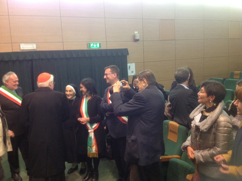 Un Decanato vivace, quello di Desio, dalla forte tradizione cristiana e impegnato sulle frontiere delle sfide di oggi e di domani, fa da cornice alla 38a Visita pastorale feriale dell’Arcivescovo che, accolto con grande affetto, arriva nel Teatro La Campanella di Bovisio Masciago. Il territorio comprende quattro Comunità pastorali (cui si aggiunge la parrocchia di Taccona) e quattro Comuni – Desio, Bovisio, Muggiò e Nova Milanese -, i cui sindaci siedono in prima fila, così come il clero. Sono collegate anche l’attigua Sala “Don Campanelli” e la chiesa di San Pancrazio.