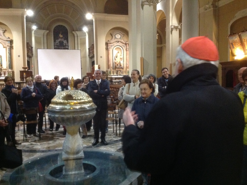 «Questo Decanato ha una responsabilità, perché non possiamo ricordare le sue grandi figure come Pio XI, il sindacalista cattolico Achille Grandi, padre Monti e don Luigi Giussani – tanto decisivo per la mia vita e la mia vocazione -, non per gloriarcene, ma per prendere esempio», dice subito il Cardinale, che spiega il senso di ciò che si sta vivendo: «Questo gesto ricava la sua fisionomia dall’assemblea eucaristica, che crea una dimensione ecclesiale e definisce uno stile. Come l’Eucaristia si attua in tre momenti, dal riconoscimento del proprio peccato e dall’atteggiamento di confessione, all’ascolto della Parola di Dio, in cui ci parla Gesù stesso, e all’Eucaristia, così deve essere stasera». Poi, l’articolazione della Visita pastorale stessa in tre steps – «vogliamo recepire una vita in atto» – e, infine, lo scopo dell’iniziativa: «Superare il divario tra fede e vita in questo cambiamento di epoca, per cui molti battezzati corrono il rischio di ragionare secondo l’opinione pubblica dominante e non secondo il pensiero di Cristo».