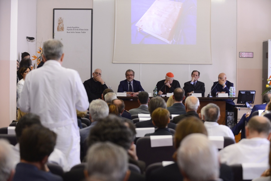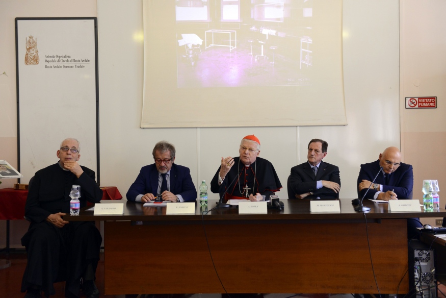 Presenti molte autorità, tra cui il presidente della Regione, Maroni, il vicepresidente e assessore regionale alla Salute, Mario Mantovani, il sindaco di Busto, Gigi Farioli, il Cardinale, presso l’Aula Magna dell’Ospedale, dialoga così, attraverso diverse domande, con il personale medico e infermieristico.