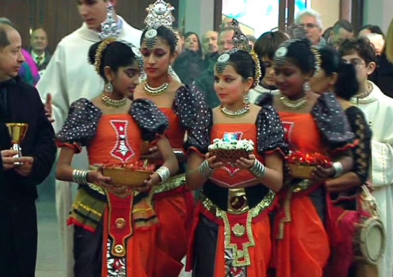 Un auspicio, che nella preghiera corale, in quella universale e nella comunità intera che si stringe intorno al Pastore, si fa palpabile nell’affetto e nella fede condivisa, con gesti belli e molto significativi specie in una parrocchia, come Sant’Antonio Maria Zaccaria, ormai “multietnica”. Infatti i doni all’altare sono portati anche da tre giovani dello Sri Lanka, che avanzano armoniosamente al ritmo di danza, come è tradizione nel loro Paese. Un momento suggestivo, bello, che fa ben sperare per il futuro dell’integrazione, per le nuove generazioni: i ragazzi che, infine, incontrano per un saluto “tutti insieme”, come sussurra uno dei più piccoli, il Cardinale.