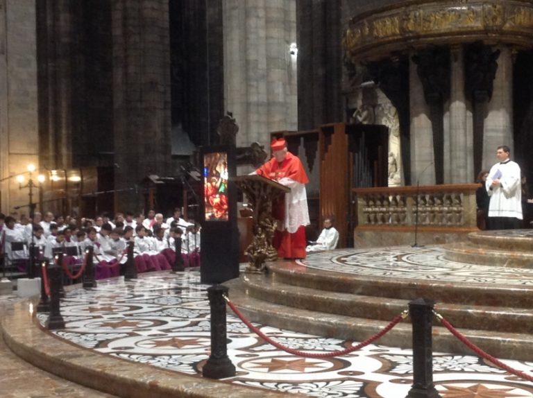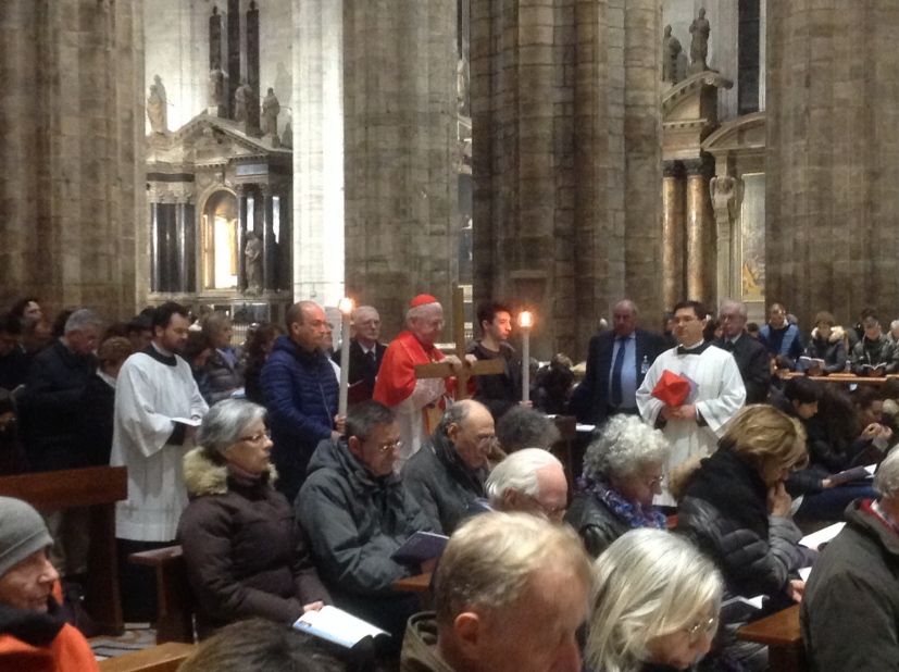 Infine, l’invocazione che è preghiera: «Fa’, Signore, che possiamo accompagnarti sulla via del Calvario con l’amore deciso, totale e fedele di tua Madre. Aiutaci a non lasciarci sopraffare dalla paura del sacrificio, donaci quella che fu l’umiltà del Cireneo. Fa’ che, come la Veronica, ci lasciamo imprimere nella carne le ferite del Tuo volto amato. Fa’ che accettiamo di essere messi a terra. Fa’ che tutto questo allarghi in noi il senso dell’altro, ce lo faccia amare e stimare». «Come sarebbe diverso il mondo se i cristiani tentassero almeno di praticare l’amore per i nemici. Ma se siamo qui è perché nel profondo del nostro cuore, lo vogliamo. Di ciò rendiamo grazia alla nostra amata Chiesa ambrosiana e a quella intera, al Santo Padre che, con tanta forza testimoniale, la conduce».