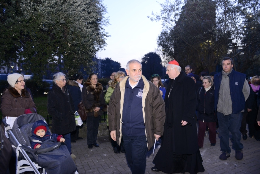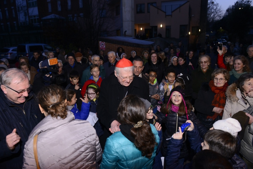 Come un parroco – in questo periodo in cui lo fanno tutti i preti ambrosiani – Scola cammina per le strade della Comasina per la benedizione, portata anche ai Padri, anch’essi anziani e malati, della vicina Casa di Riposo della Provincia Italiana dei Comboniani. L’Arcivescovo incontra così oltre una cinquantina di missionari che hanno speso la vita per l’annuncio del Vangelo. In un’atmosfera di comuinione sacerdotale e di affetto il Cardinale benedice i sofferenti e gli anziani con uno sguardo di fiducia per il futuro e nell’attesa dell’imminente venuta del Signore Bambino.