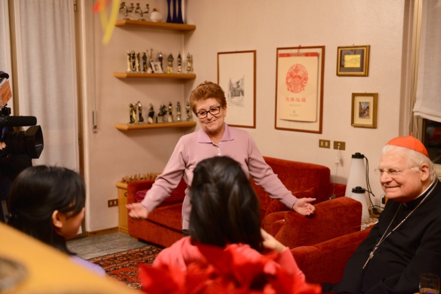 La storia è semplice, di quella semplicità del bene che lascia disarmati: i genitori cinesi lavorano fino a tardi nel ristorante attraverso il quale sperano di aver una vita migliore, Marianna ha pochi mesi e a poco a poco la “mamma” italiana se ne fa carico, senza in nulla sostituire la madre cinese, poi, arriva anche Sofia e – ovviamente – non separa le due sorelline. Oggi il rapporto è felice, gratificante per tutti e fonte di una serenità che si respira in questo salotto, tra sorrisi e frasi scherzose che coinvolgono anche l’Arcivescovo.
