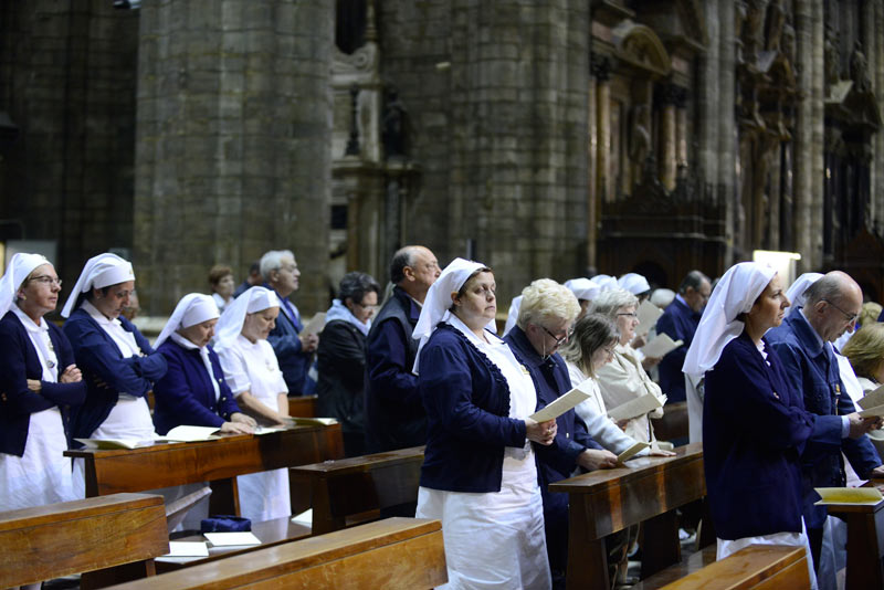 Un momento di preghiera a conclusione del mese mariano, da vivere in comunione con tutti i fedeli ambrosiani, come ha sottolineato l’Arcivescovo. In prima fila i malati, accompagnati dai volontari dell’Unitalsi. Proprio una di loro, assieme a una famiglia con cinque figli, una suora polacca e due dei nuovi vescovi ausiliari, monsignor Franco Agnesi e monsignor Pierantonio Tremolada, hanno condotto la recita delle decine.