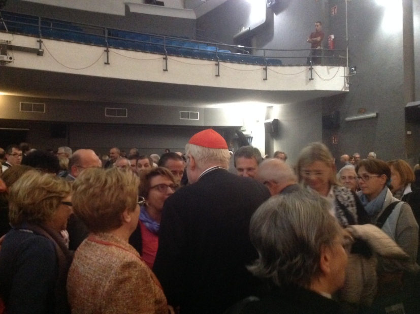 Secondo giro di domande: si discute di cultura, di coordinamento di fronte alle emergenze del settore caritativo e anche di impegno politico. «Non c’è mai stato un passaggio epocale della storia che abbia segnato, come l’attuale, una discontinuità: pensiamo alle neuroscienze, che pretenderebbero di delimitare le scelte dell’uomo, alla bioetica, alla sessualità che oggi viene banalizzata, ai fenomeni migratori che non sono un’emergenza, ma dureranno almeno altri cinquant’anni – riflette Scola -. Certo, le sfide sono epocali, ma se siamo qui è perché siamo cristiani, perché abbiamo incontrato il Signore Gesù con un’esperienza in tutto simile a quella che fecero i suoi amici. Qualunque sia il cambiamento in atto nella storia, abbiamo un punto di partenza solido. Un certo modo di sviluppare energie di solidarietà necessita di andare alla radicalità evangelica, vivendo ogni carisma, senza chiusure, altrimenti si rimane a livello di slancio filantropico. Stiamo andando verso un’epoca in cui la pluriformità è importantissima (basti pensare ai movimenti, ai gruppi e alle articolazioni) e rende persuasiva la vita cristiana, ma occorre tenacemente ricercare l’unità. Il coordinamento o sfocia nella comunione o, se è fenomeno puramente organizzativo, non porta a niente. Un avvenimento si comunica solo con un altro avvenimento: interroghiamoci se le nostre Comunità sono davvero luoghi del “vieni e vedi”, come dice il Vangelo».