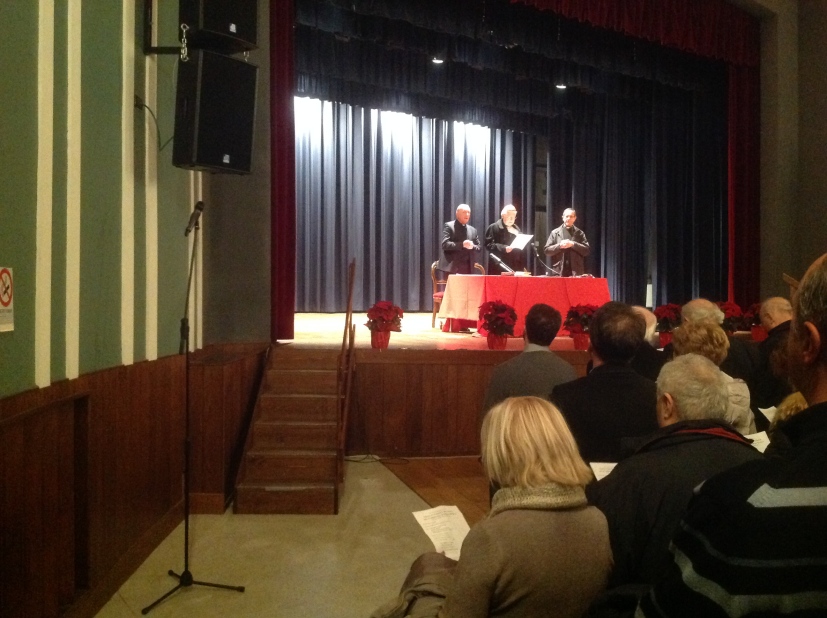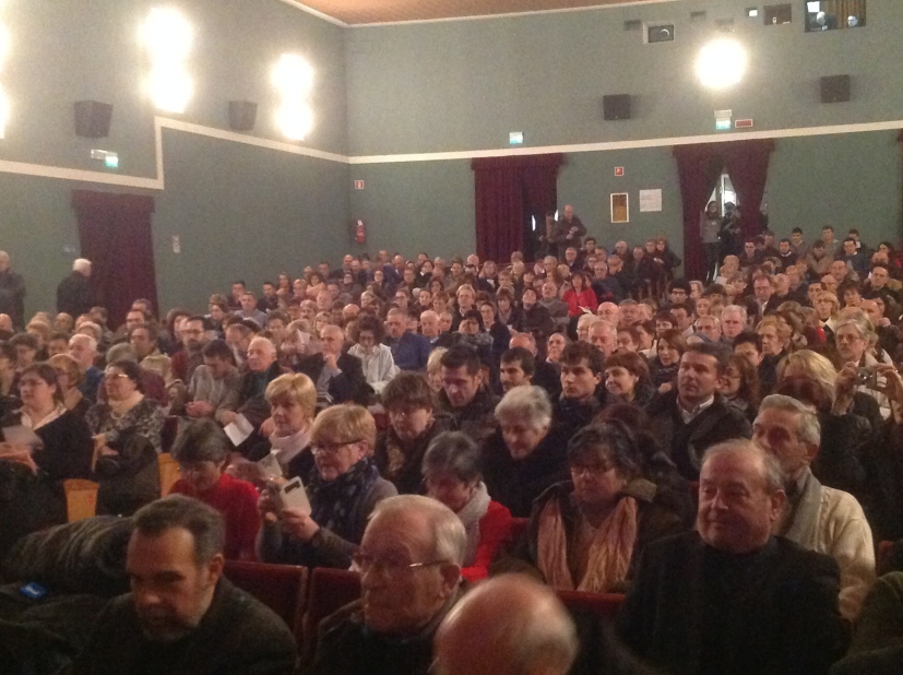 «Il vissuto di ogni giorno deve passare nell’Eucaristia, nella consapevolezza che Gesù vuole condividere con noi, se non gli chiudiamo la porta, un’amicizia e l’incontro vivo e reale con la sua persona». È una Visita pastorale attesa, preparata con incontri a diverso livello e che diviene fonte per un rinnovato cammino futuro, quella che il cardinale Scola compie nel Decanato di Castano Primo. Il Teatro Brera di Inveruno, che si riempie velocemente appena aperti i cancelli, è la rappresentazione del Decanato che conta 18 parrocchie, tre Comunità Pastorali e due Unità, per un territorio di 80 mila abitanti. Siedono accanto all’Arcivescovo il Vicario episcopale di Zona IV monsignor Giampaolo Citterio e il decano don Ferdinando Merelli che auspica: «Camminare insieme ci aiuta, abbiamo bisogno di ritrovarci di più, perché da soli si va poco lontano e si rischia di non dare risposte chiare e precise alle sfide che ci troviamo tutti ad affrontare».