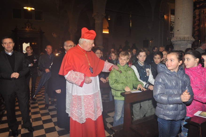 Ai fedeli che affollano la parrocchia – disposti su molte fila i ragazzi della Comunione e della Cresima che seguono attentissimi tutta la Celebrazione – e a coloro che si trovano nel vicino e collegato salone parrocchiale, il Cardinale spiega subito: «La Quinta domenica di Quaresima, identificata nel grande evento della Risurrezione di Lazzaro, è un insegnamento che si vuole offrire a noi tutti, come ogni domenica insegna, attraverso Gesù, precisi stili di vita. Arcisate e Brenno costituiscono un borgo significativo di circa 10.000 abitanti alla periferia rispetto a Milano: una periferia che è occasione di sguardo attento, capace di intendere, nella distanza, ciò che sta accadendo nel Paese nella nostra affaticata Europa».