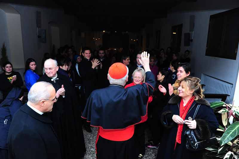 Nel pomeriggio del 24 dicembre l’Arcivescovo ha rivolto gli auguri per il Natale con un’intervista concessa a Radio Vaticana, ricordando la necessità di «attraversare la prova della crisi economica e finanziaria, ma che morde ormai sulla vita della gente con la perdita dei posti di lavoro e con la mancanza di prospettiva lavorativa per i giovani, trovando le «ragioni adeguate per una speranza che sia veramente costruttiva e realistica. Io trovo che la ragione numero uno sia proprio il contenuto del Natale, cioè il Dio che si fa vicino a noi, patisce con noi queste fatiche e questo travaglio, ma nello stesso tempo ci apre alla speranza che viene dal suo amore, il quale ci sollecita a tutte le azioni possibili, perché si possa uscire rinnovati da questa prova. Le azioni sono quelle più elementari, per esempio aggiungere un posto a tavola per i più bisognosi, in questo tempo natalizio, impostare una solidarietà più costruttiva, riformulare le leggi della finanza, ritrovare un’energia nella nostra persona». Ricordando che è la famiglia la realtà più colpita dalla crisi economica, Scola ha evidenziato come «in altri Paesi, apparentemente più secolarizzati come la Francia, hanno preso delle iniziative decisive contro il “gelo” demografico per sostenere la famiglia. Da noi, purtroppo, la politica non lo ha fatto. Sono molte le realtà che, a livello della società civile, agiscono ogni giorno con un grande senso di solidarietà e con una forza di sussidiarietà veramente costruttiva a favore della famiglia. Ma senza un riconoscimento obiettivo, politico ed economico da parte dello Stato, senza una politica chiara della famiglia, realmente il futuro del nostro Paese è a repentaglio».