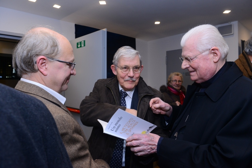 Una serata per parlare di ricerca della verità e di ascolto in una cultura che sia e si faccia carità. Questo il senso dell’incontro promosso dal Centro culturale di Milano per la presentazione del saggio del cardinale Angelo Scola Un mondo misto. Il meticciato tra realtà e speranza, edito da Jaca Book per la Collana “Città possibile”. Presenti l’autore e un folto pubblico, il dialogo si è articolato attraverso le riflessioni di Carlotta Sami (portavoce per il Sud Europa dell’Alto Commissariato delle Nazioni Unite per i Rifugiati), Enzo Moavero Milanesi (direttore della School of Law dell’Università Luiss, già ministro per gli Affari europei nei governi Monti e Letta) e Aldo Bonomi, fondatore del Consorzio Aaster. Aperto dal direttore del CmC, Camillo Fornasieri e da un breve intervento dell’assessore alla Cultura della Città metropolitana di Milano Filippo Del Corno – l’evento era inserito nella giornata di apertura della manifestazione BookCity -, il dialogo è stato moderato dalla giornalista di Repubblica Zita Dazzi, impegnata su temi sociali e inerenti l’attività dell’Arcivescovo e della Chiesa ambrosiana.